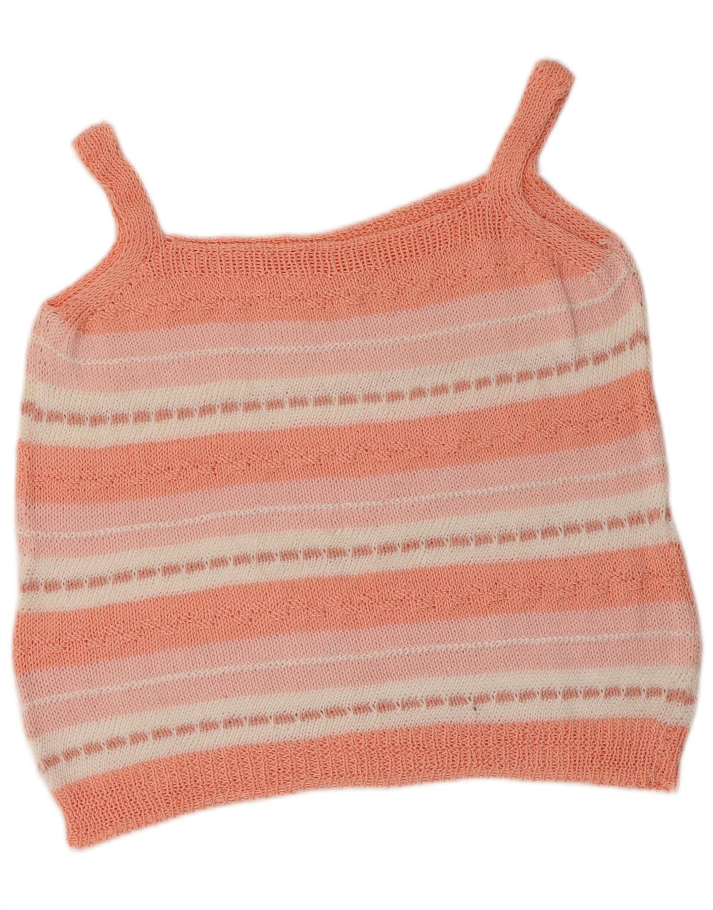 VINTAGE Womens Crop Knit Cami Top UK 12 Medium Pink Striped