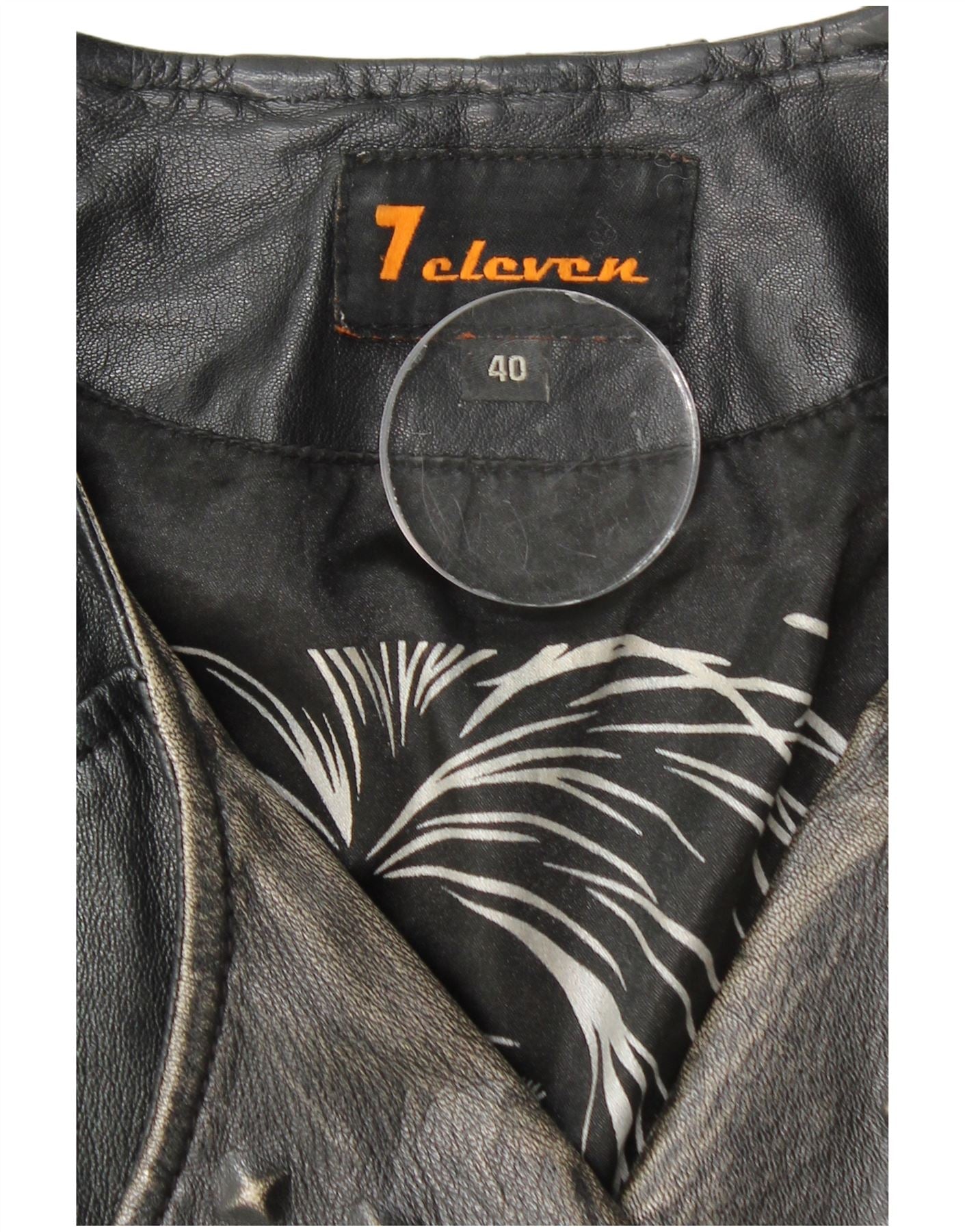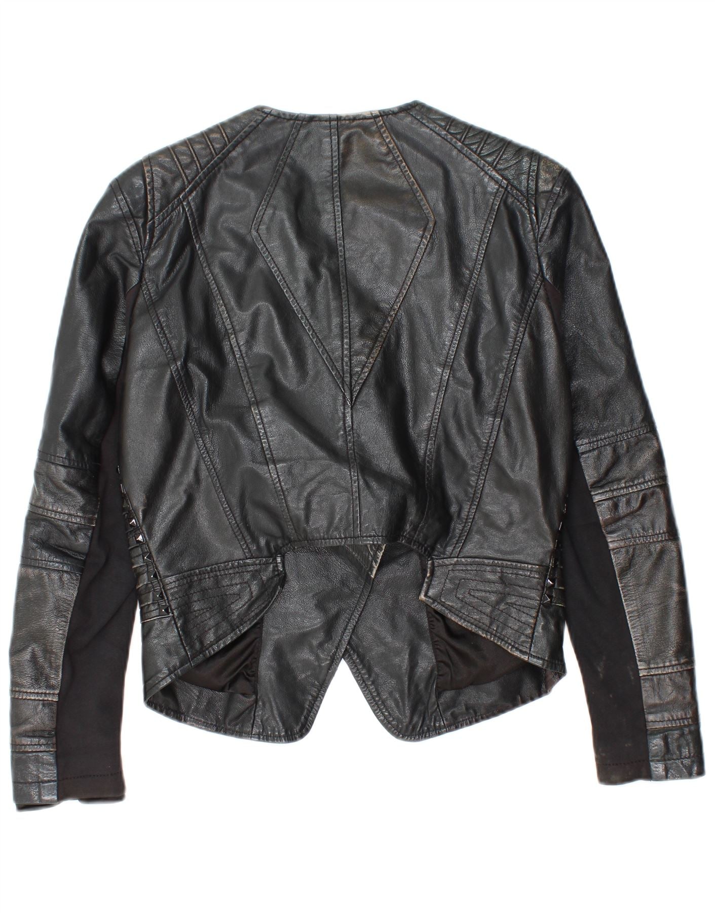 Vintage Dame Crop Læder Biker Jacket IT 40 Lille sort læder