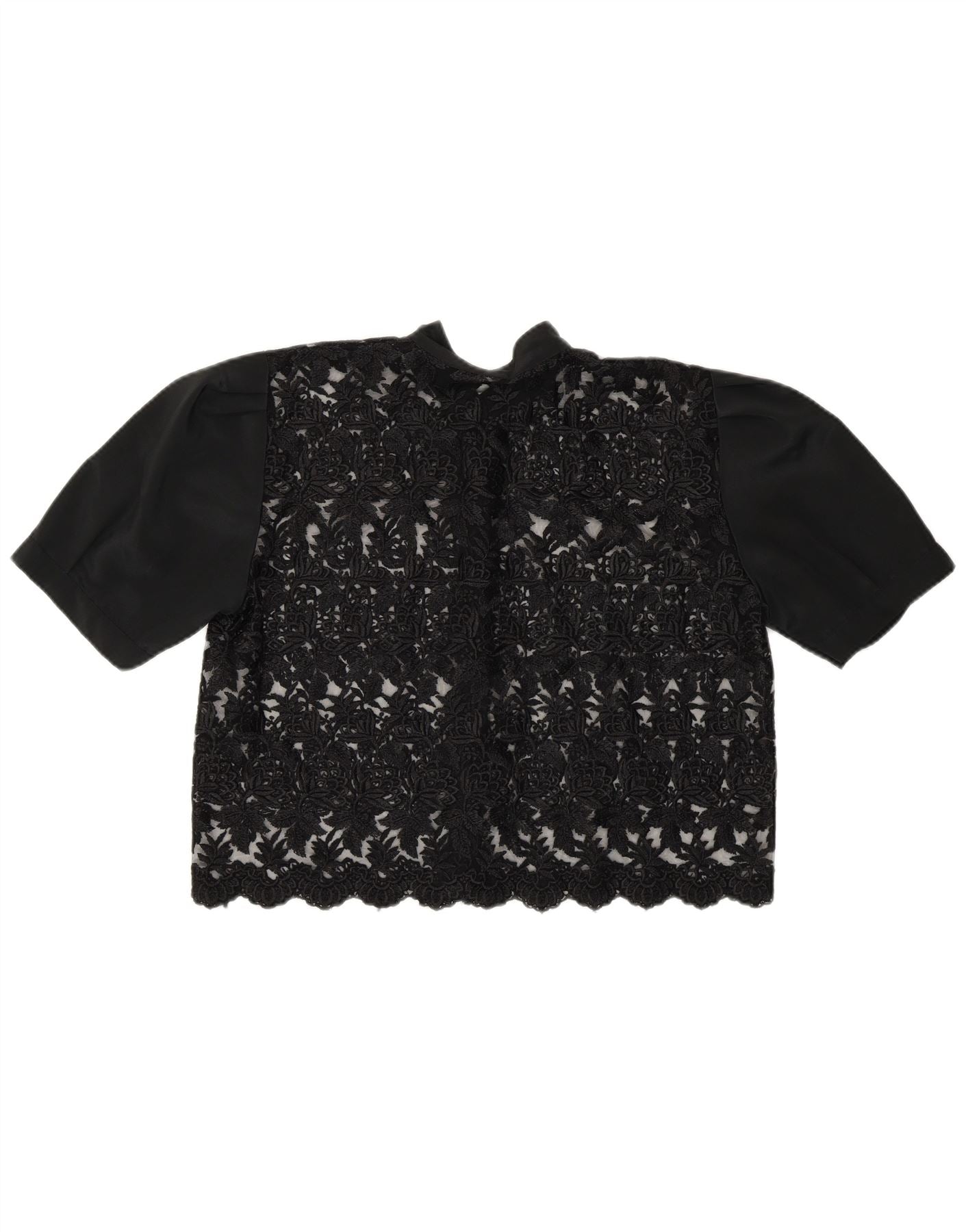 Vintage Dame Crop Se Gennem Shirt Bluse UK 14 Medium Black Floral
