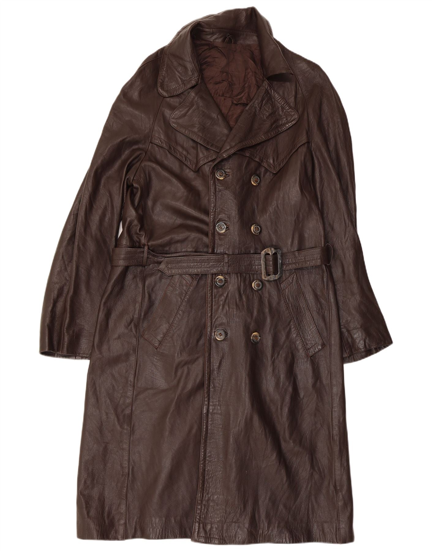 VINTAGE dobbeltradet læderfrakke til kvinder IT 52 2XL brunt læder