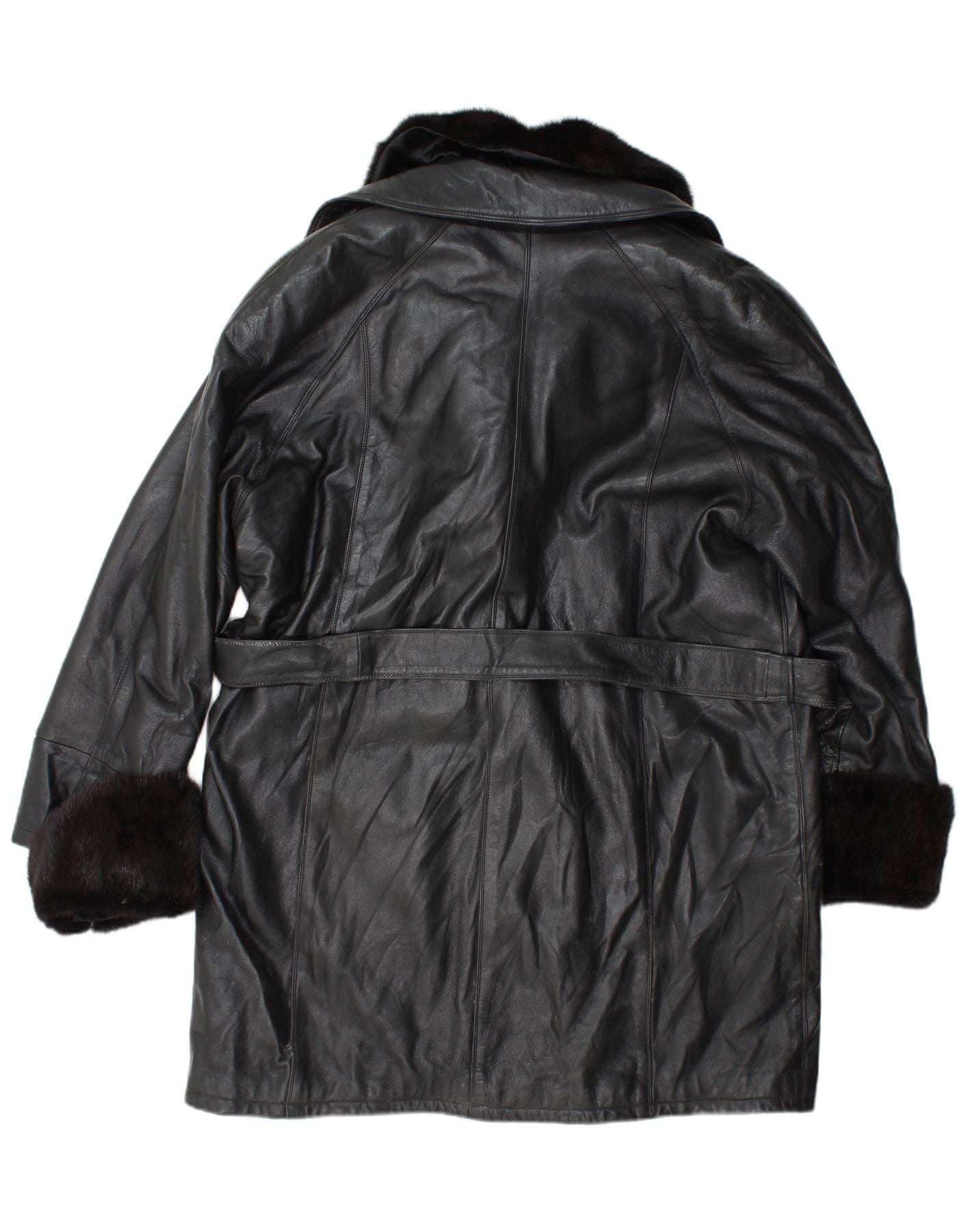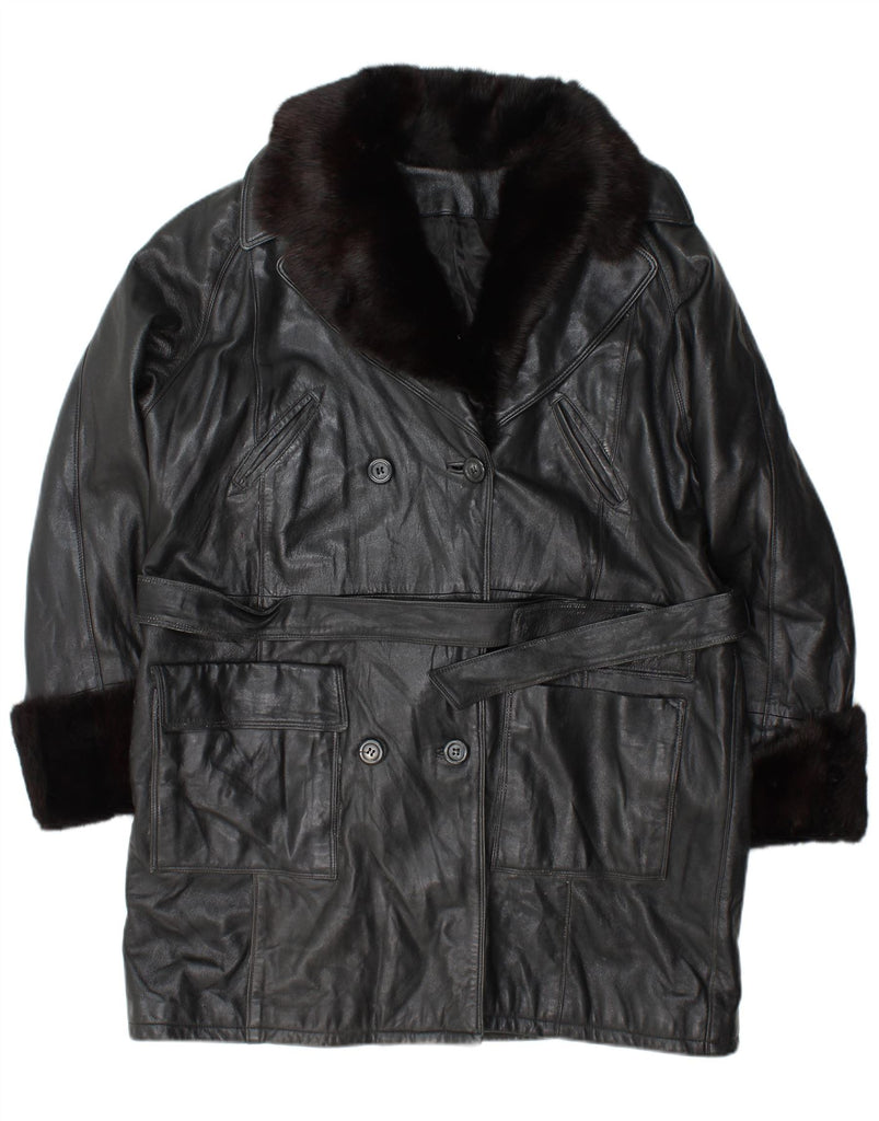 VINTAGE dobbeltradet læderfrakke til kvinder US 10 Stor sort læder