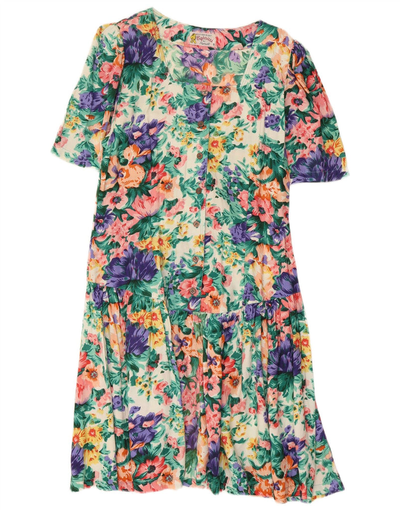 VINTAGE Womens Drop Waist Dress UK 10 Small Multicoloured Floral