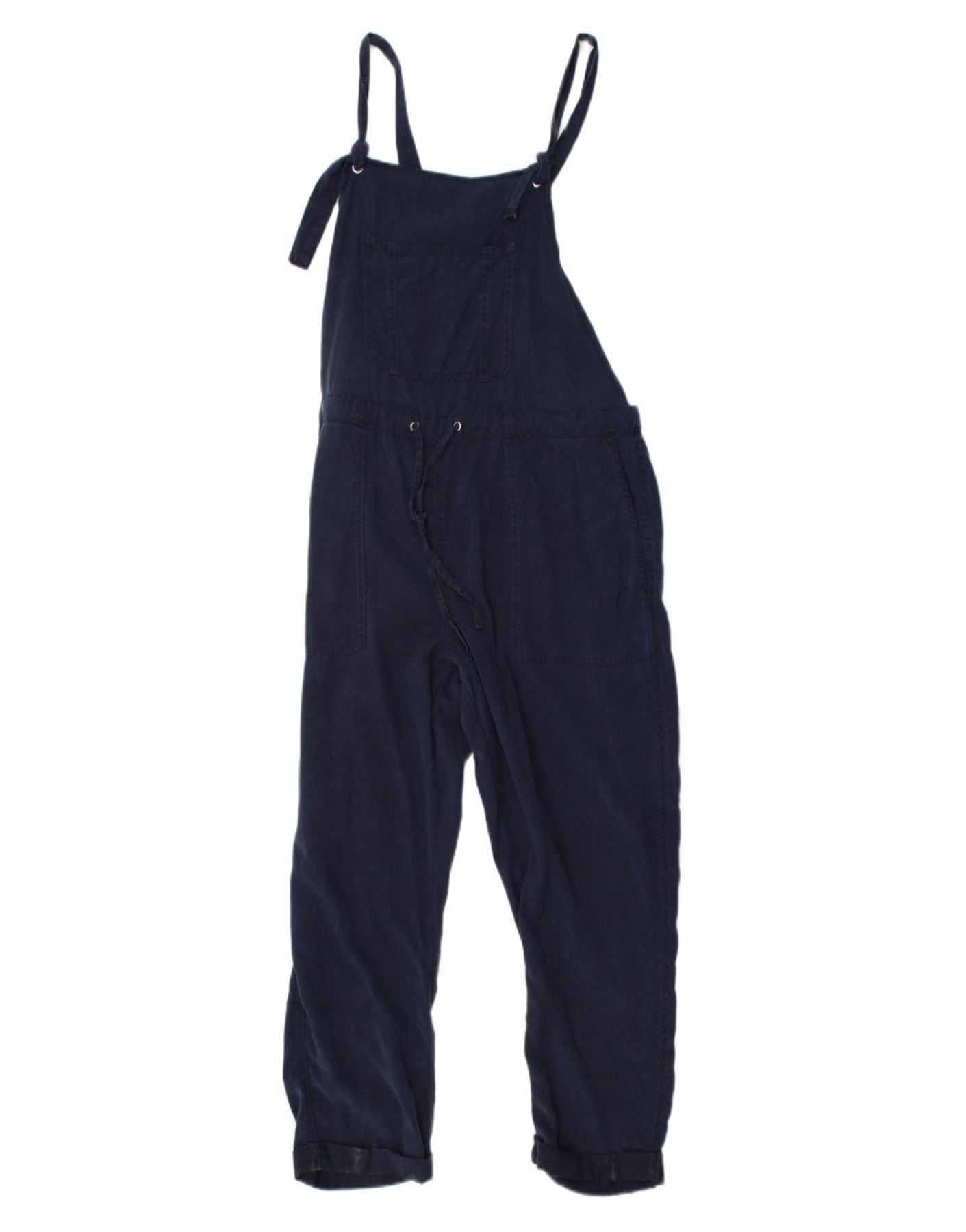 VINTAGE Womens Dungaree Jumpsuit UK 12 Medium Navy Blue Lyocell Classic