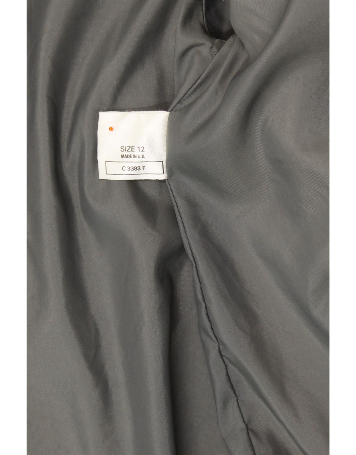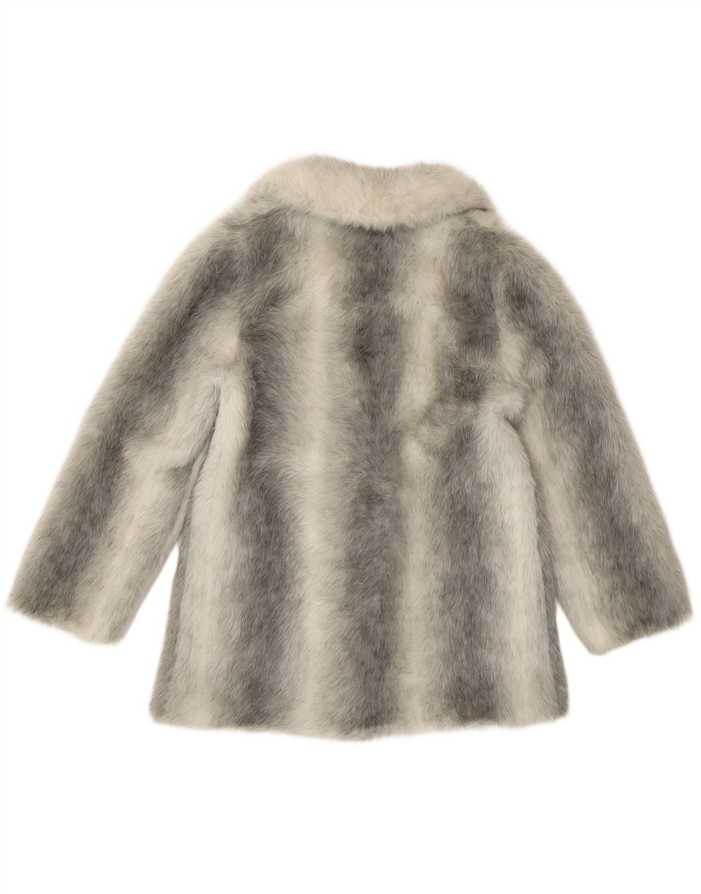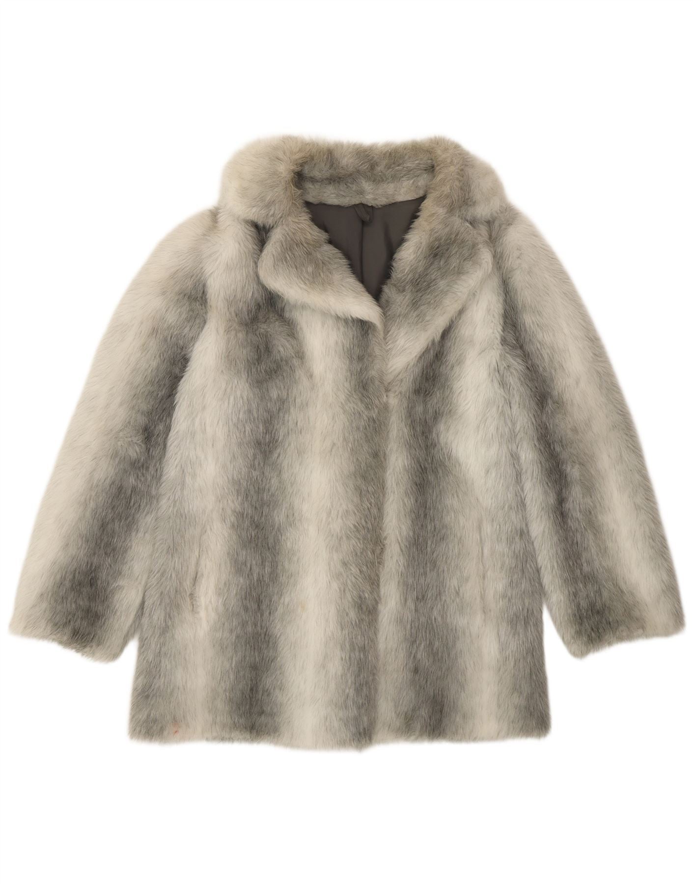 VINTAGE Dame imiteret Pels Overfrakke UK 12 Medium Sølvstribet Modacryl