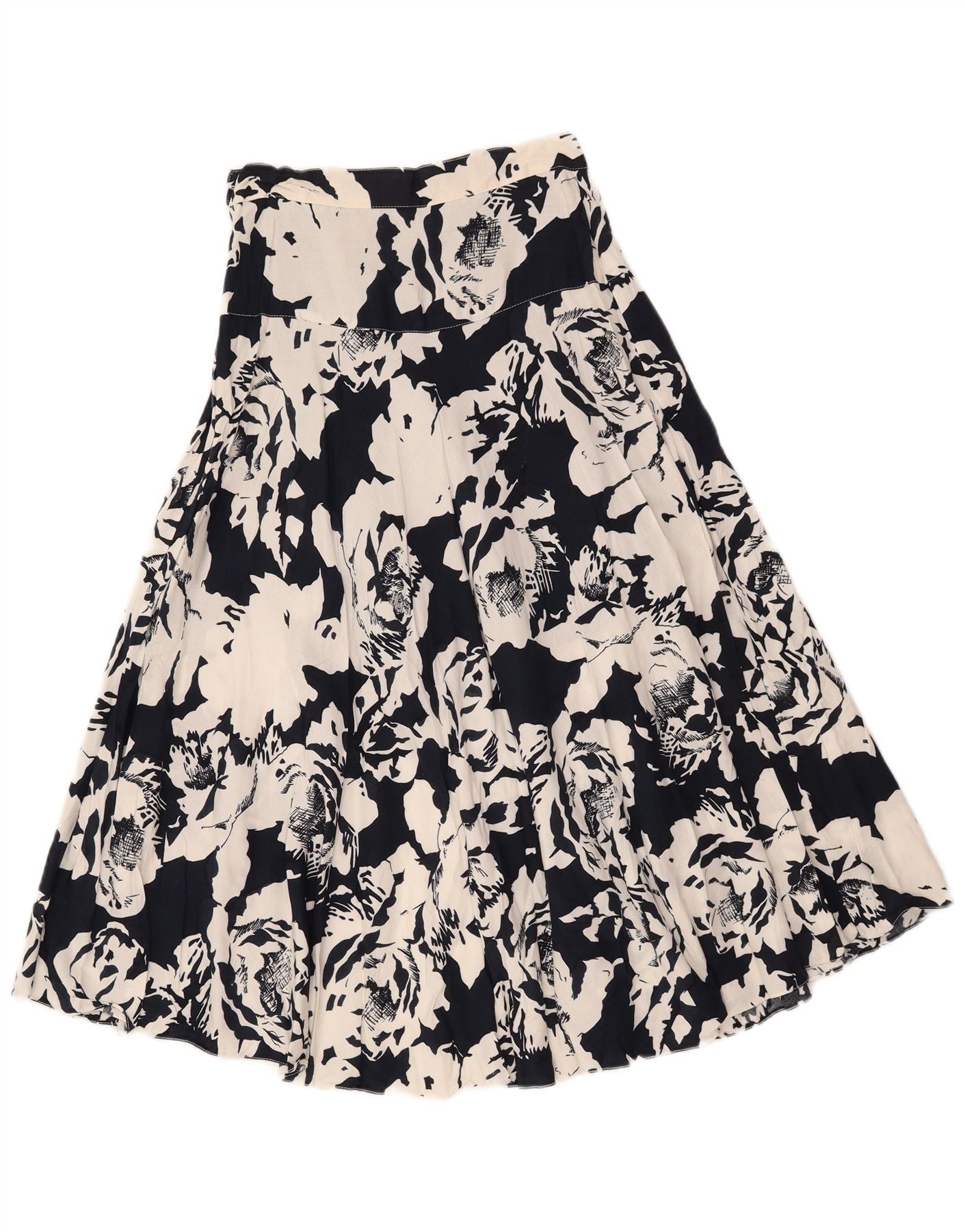 Vintage Kvinders Flared Skirt IT 40 Small W25 Black Floral Polyester