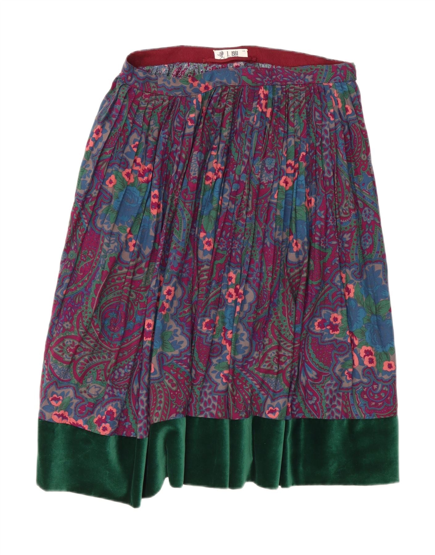VINTAGE Womens Flared Skirt IT 44 Medium W32 Purple Paisley Viscose