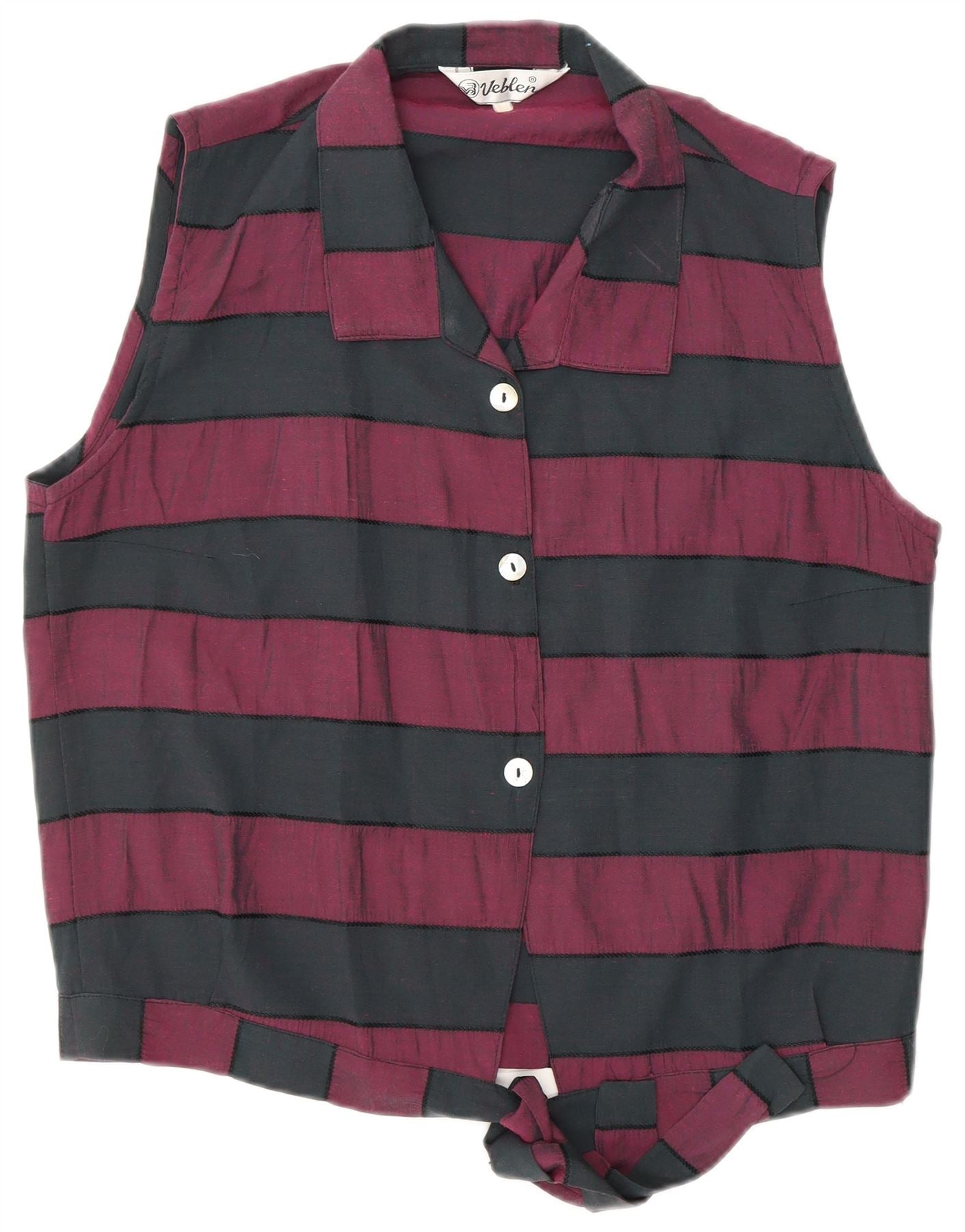 VINTAGE Womens Front Tie Shirt Bluse UK 16 Medium Sort Stribet