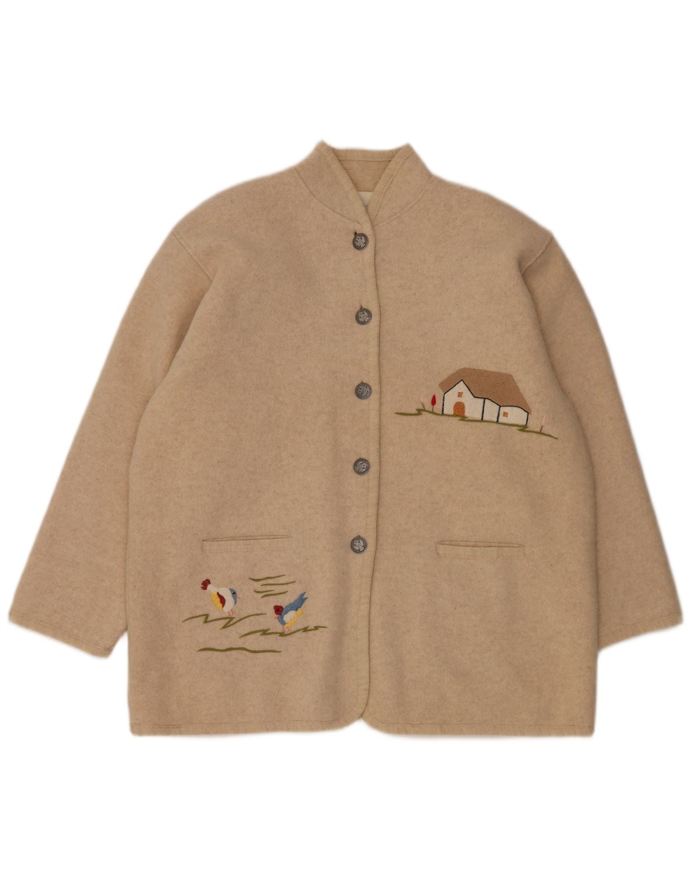 VINTAGE Dame grafisk 5-knaps blazerjakke UK 14 Large Beige