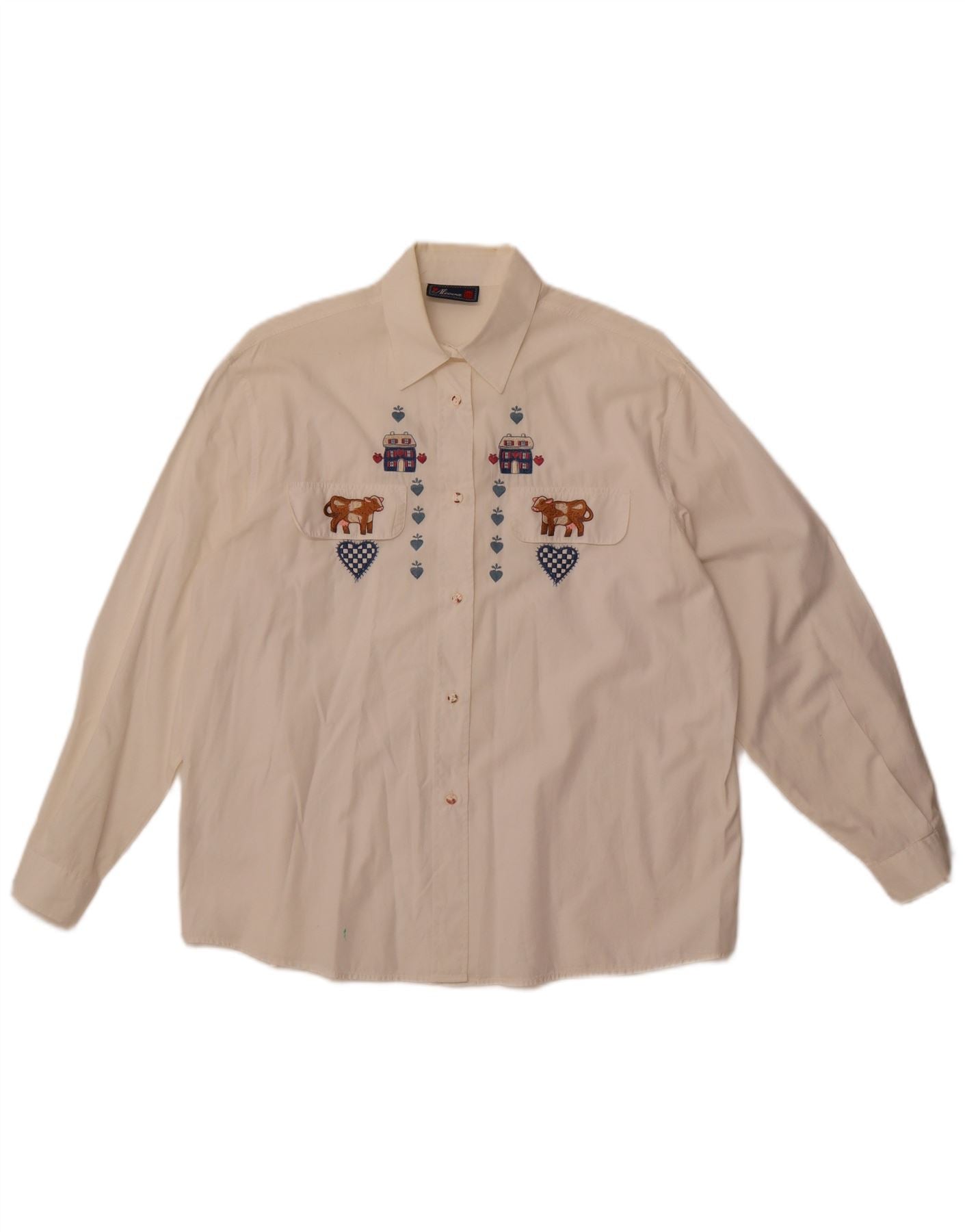 Vintage grafisk skjorte til kvinder UK 14 Stor hvid bomuld