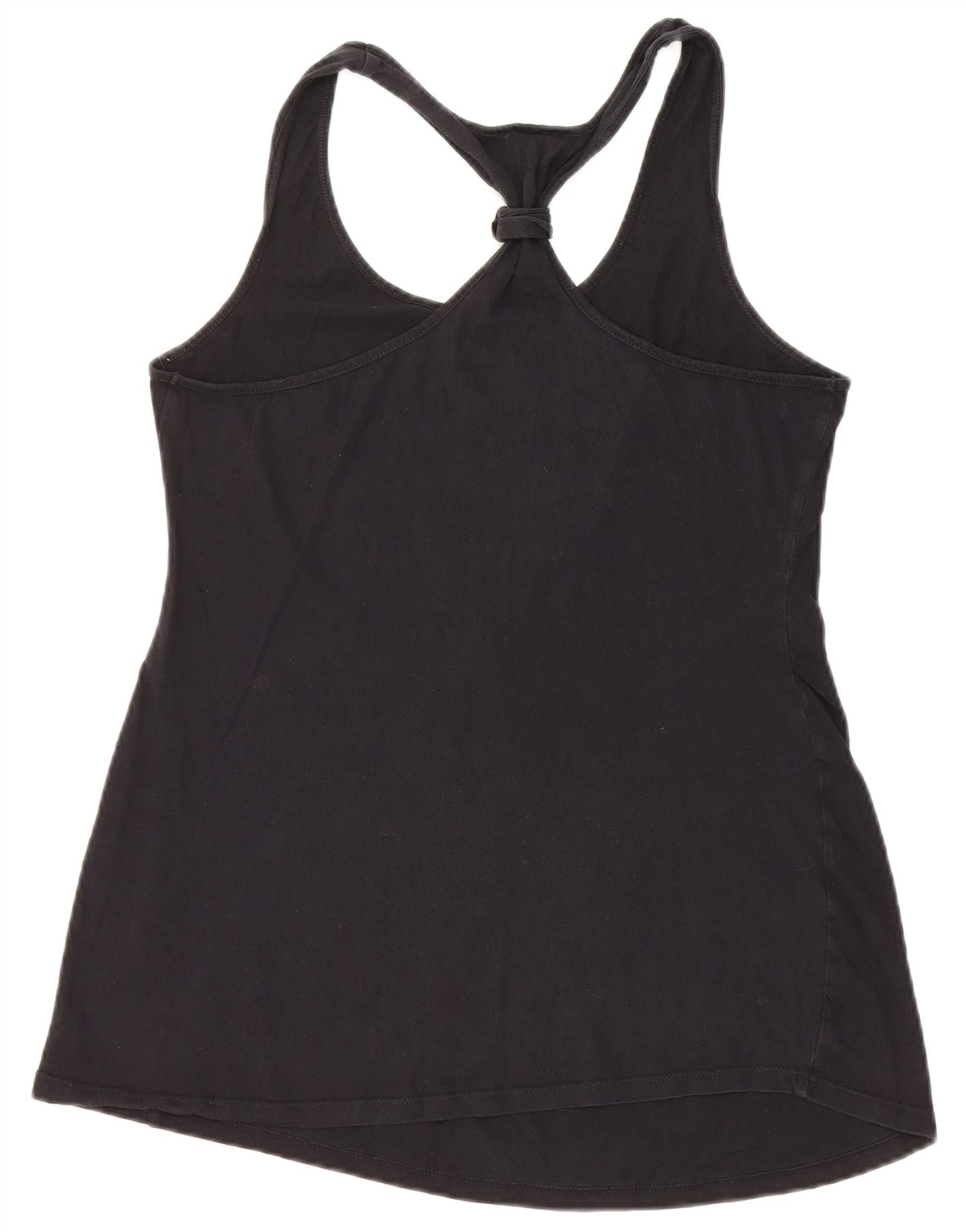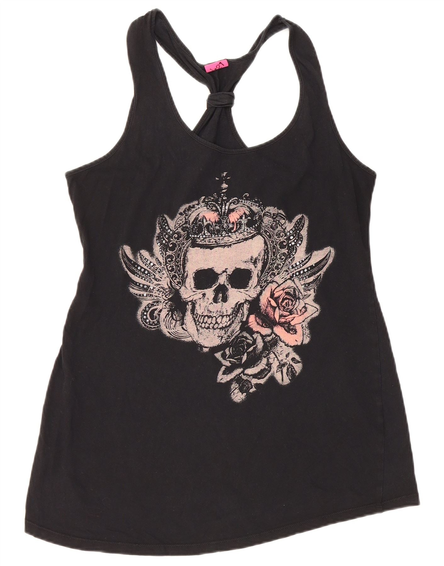VINTAGE Kvinders Grafisk Vest Top UK 12 Medium Sort Bomuld