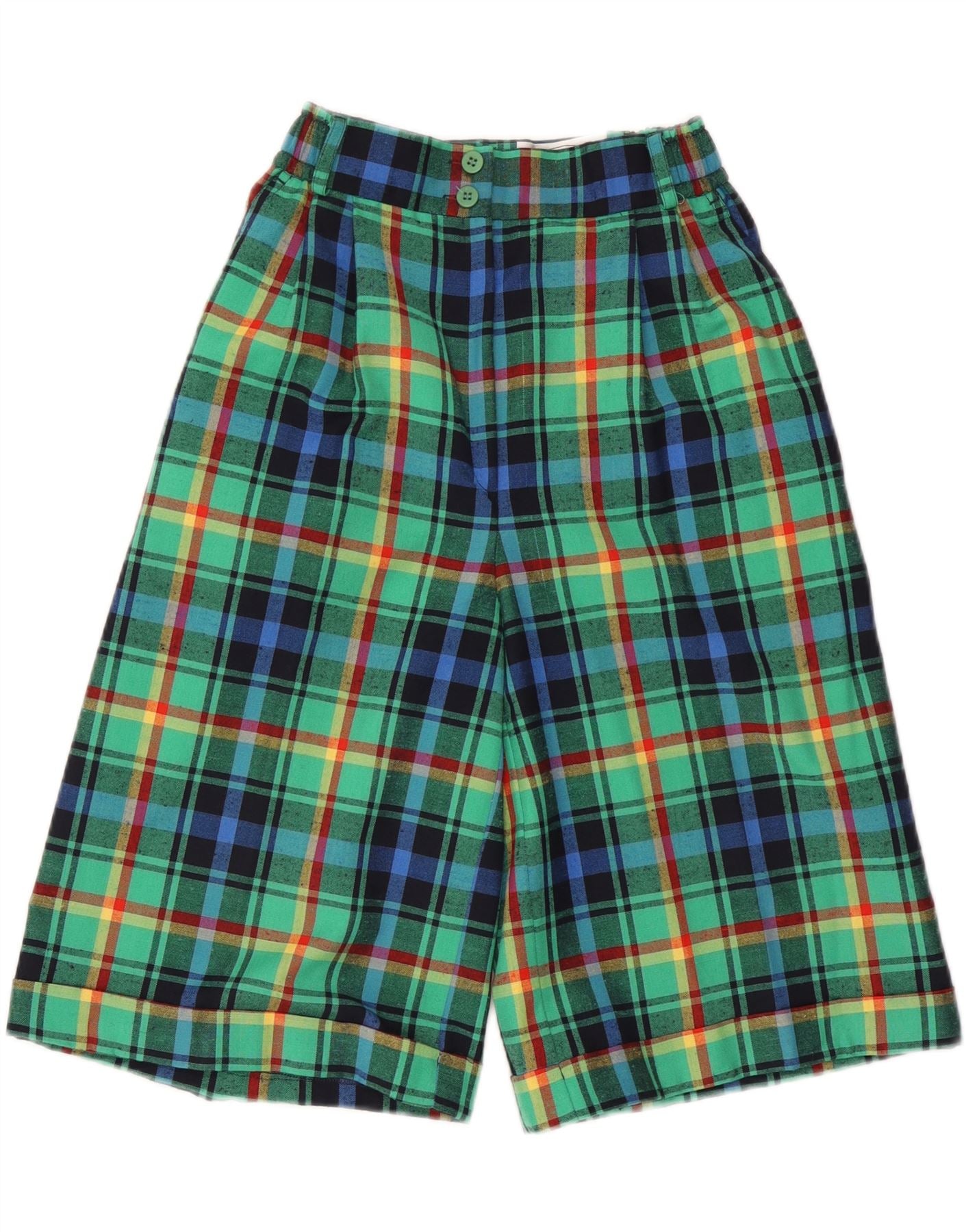VINTAGE højtaljede Bermuda-shorts til kvinder UK 10 Small W24 Green Check