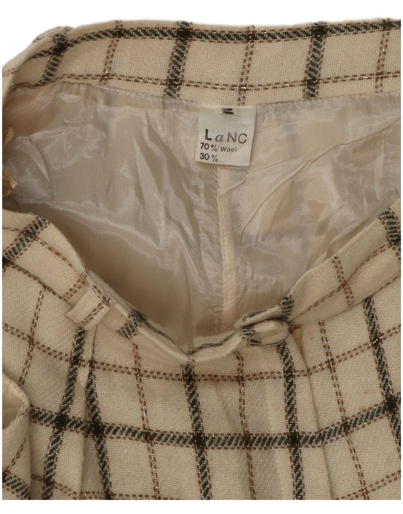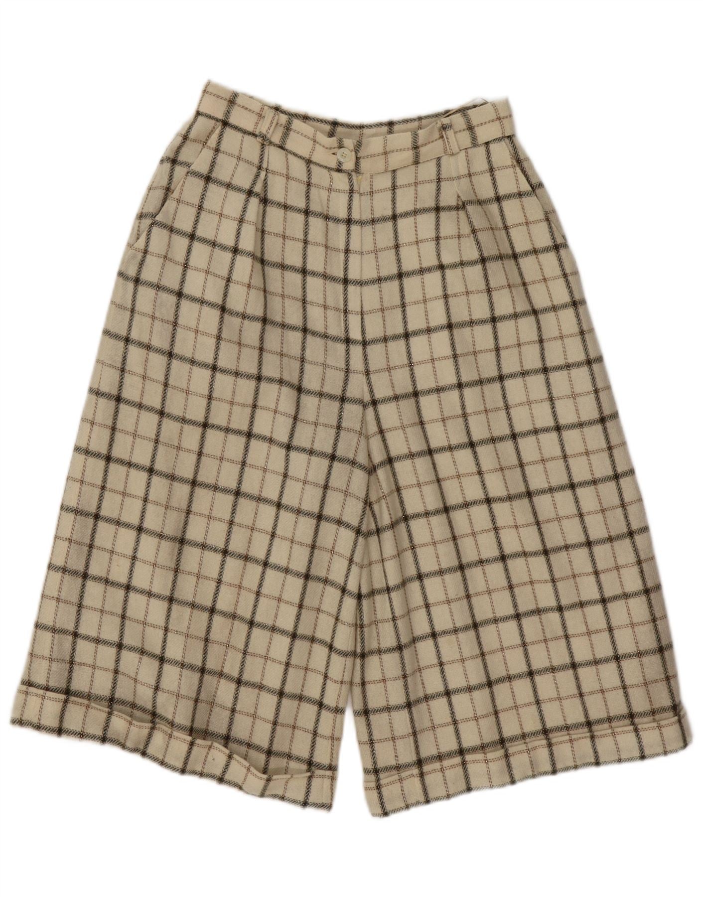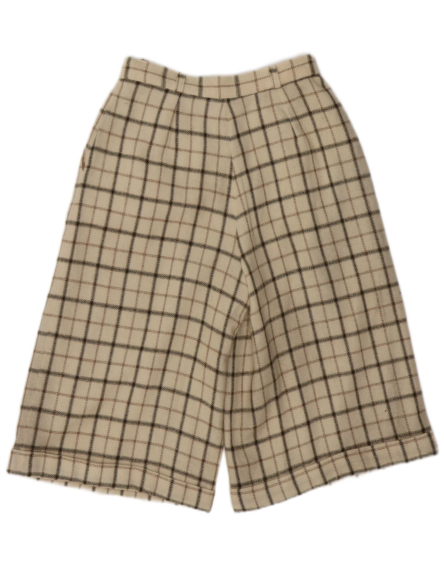 VINTAGE kvinders højtaljede fritidsshorts Medium W26 Beige ternet uld