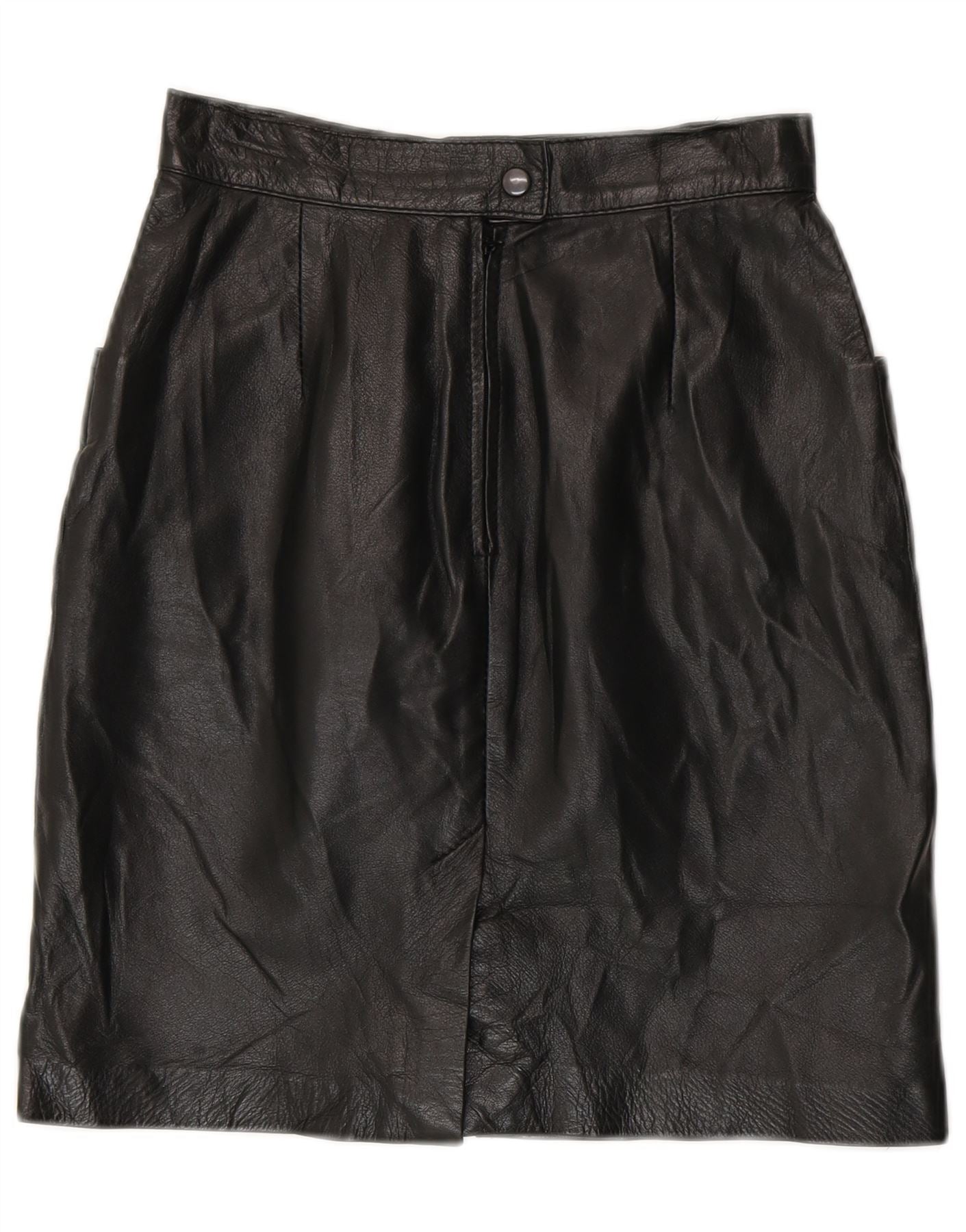 Vintage kvinders højtaljede lædernederdel IT 42 Medium W24 Sort