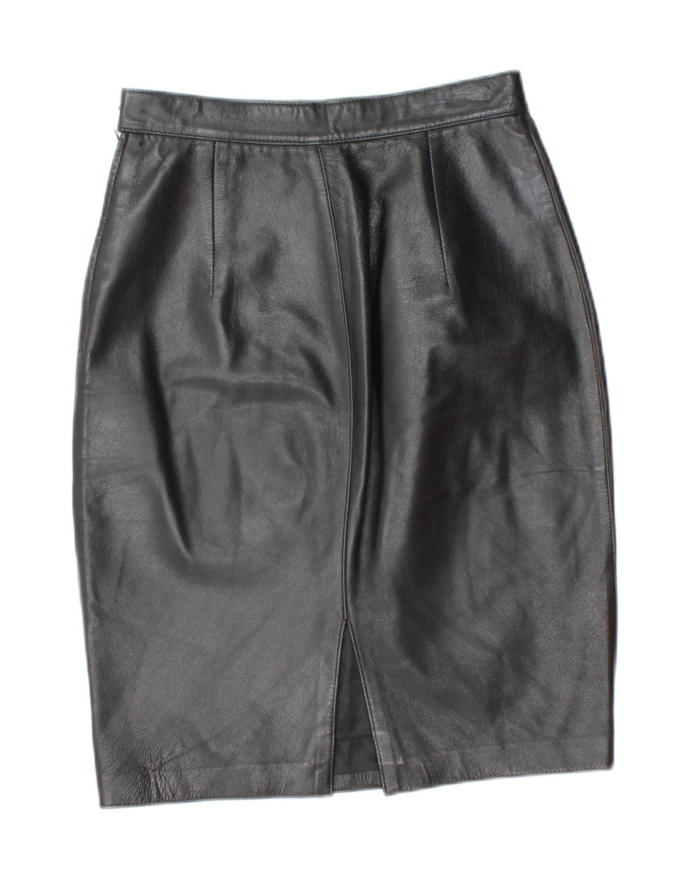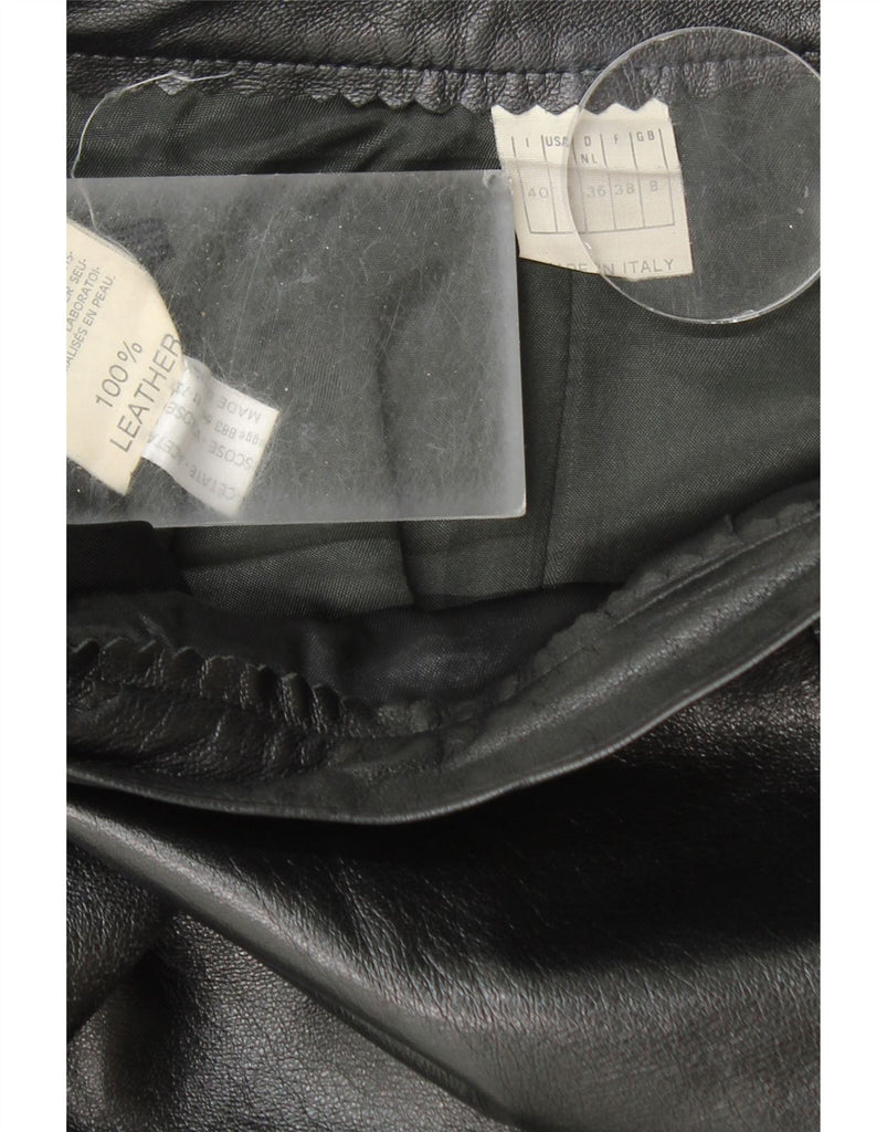 VINTAGE Womens High Waist Leather Skirt UK 8 Small W23 Black Leather