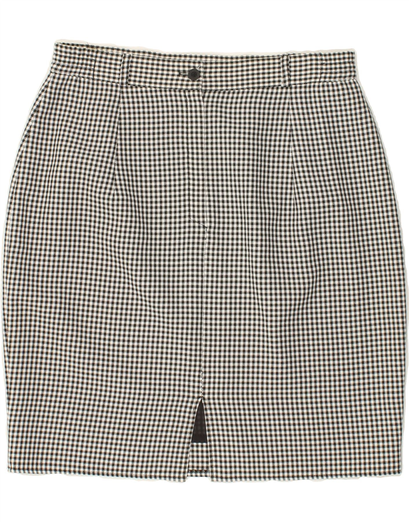 VINTAGE Womens High Waist Pencil Skirt UK 18 XL W30 Grey Gingham Polyester