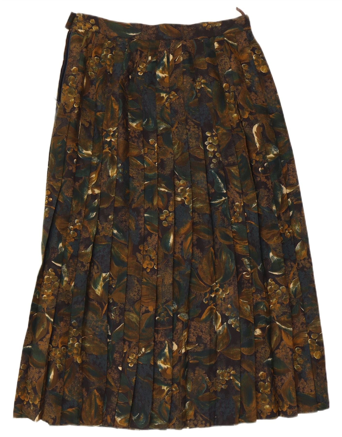 Vintage kvinders højtalje plisseret nederdel UK 14 Medium W30 Khaki Polyester