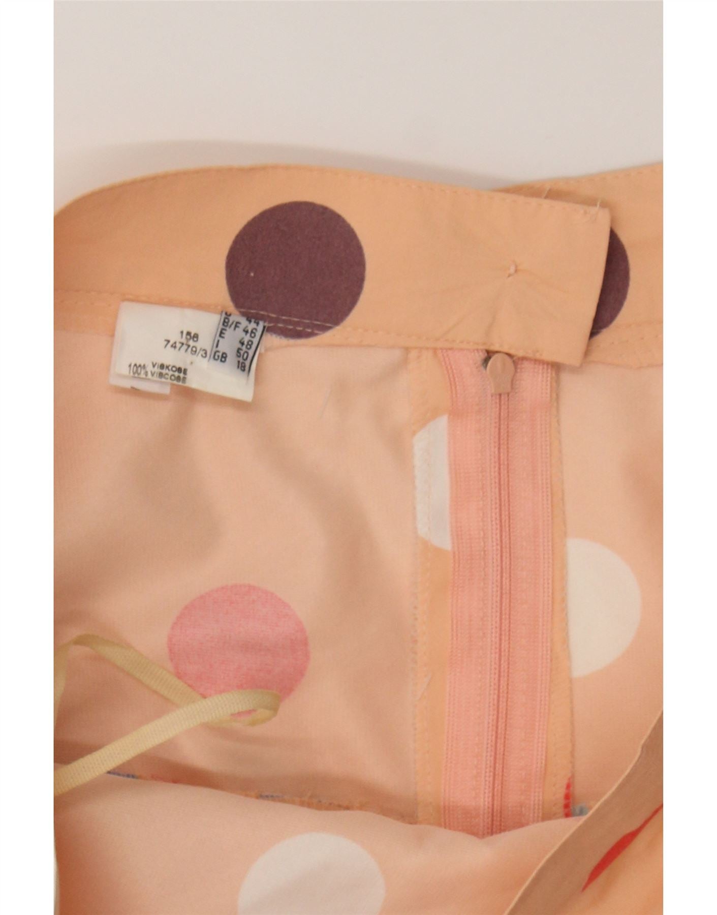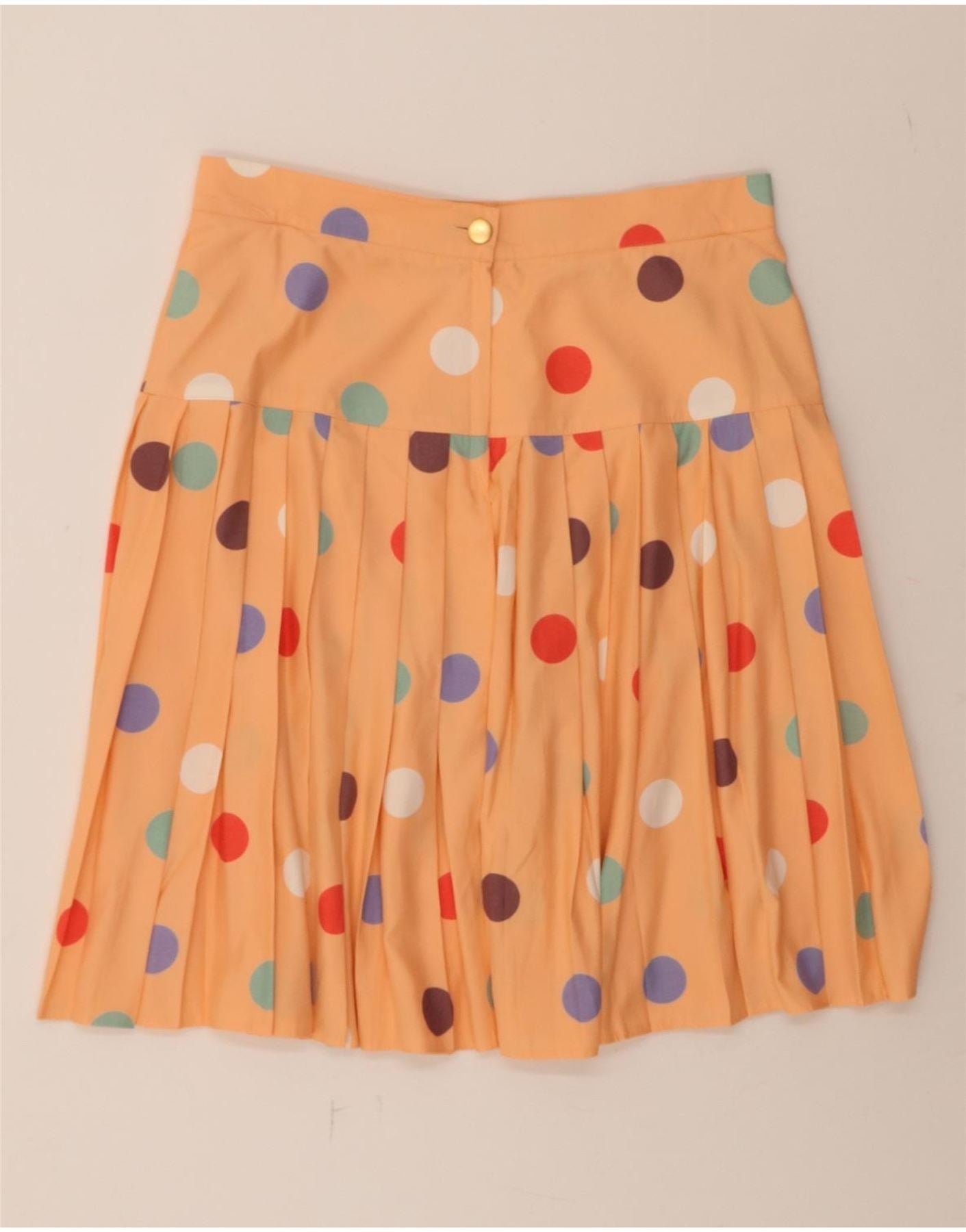 VINTAGE Womens High Waist Pleated Skirt UK 18 XL W32 Orange Polka Dot
