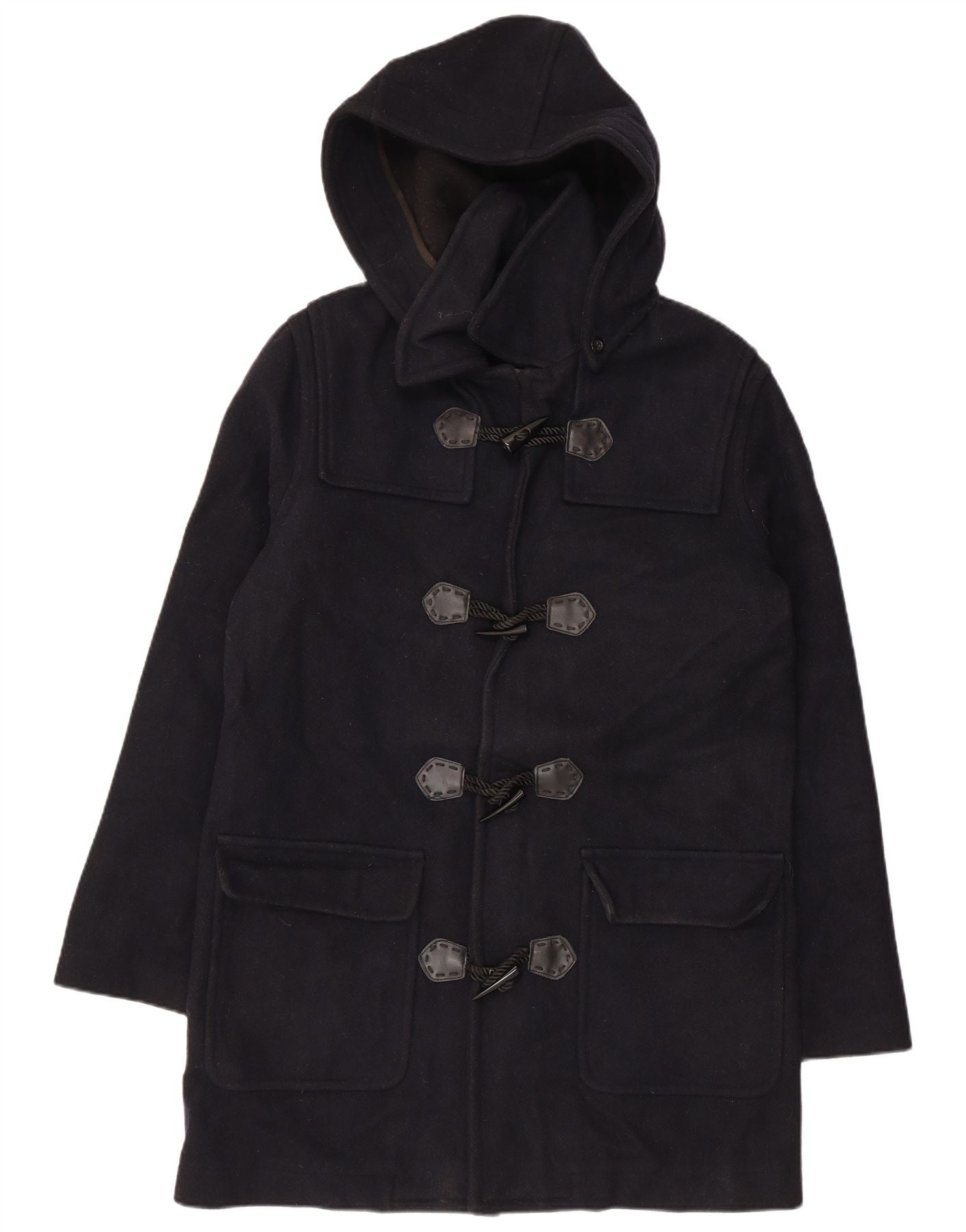VINTAGE Dame Hooded Duffel Coat UK 18 XL Marineblå Uld