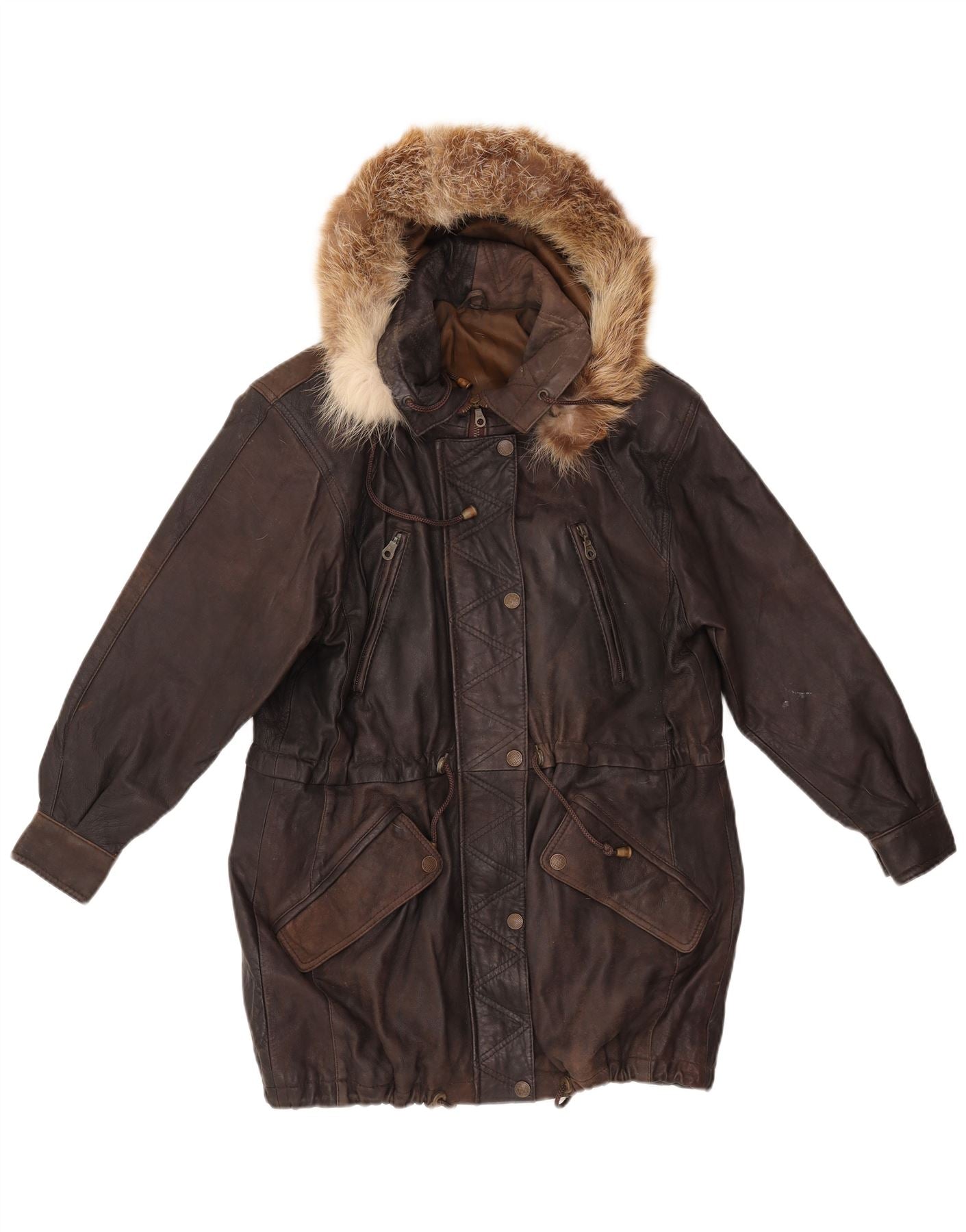 VINTAGE dobbeltradet læderfrakke til kvinder EU 38 medium brunt læder