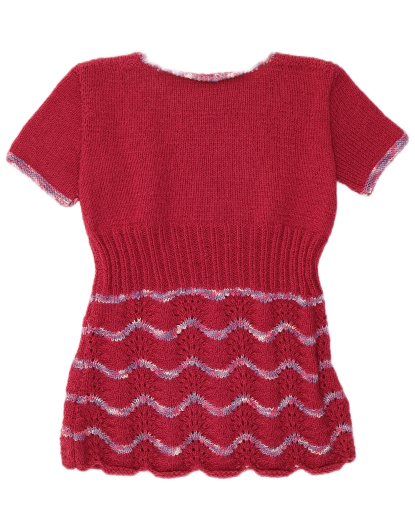 Vintage dametrøjetrøje UK 12 Medium Bourgogne Stribet Retro