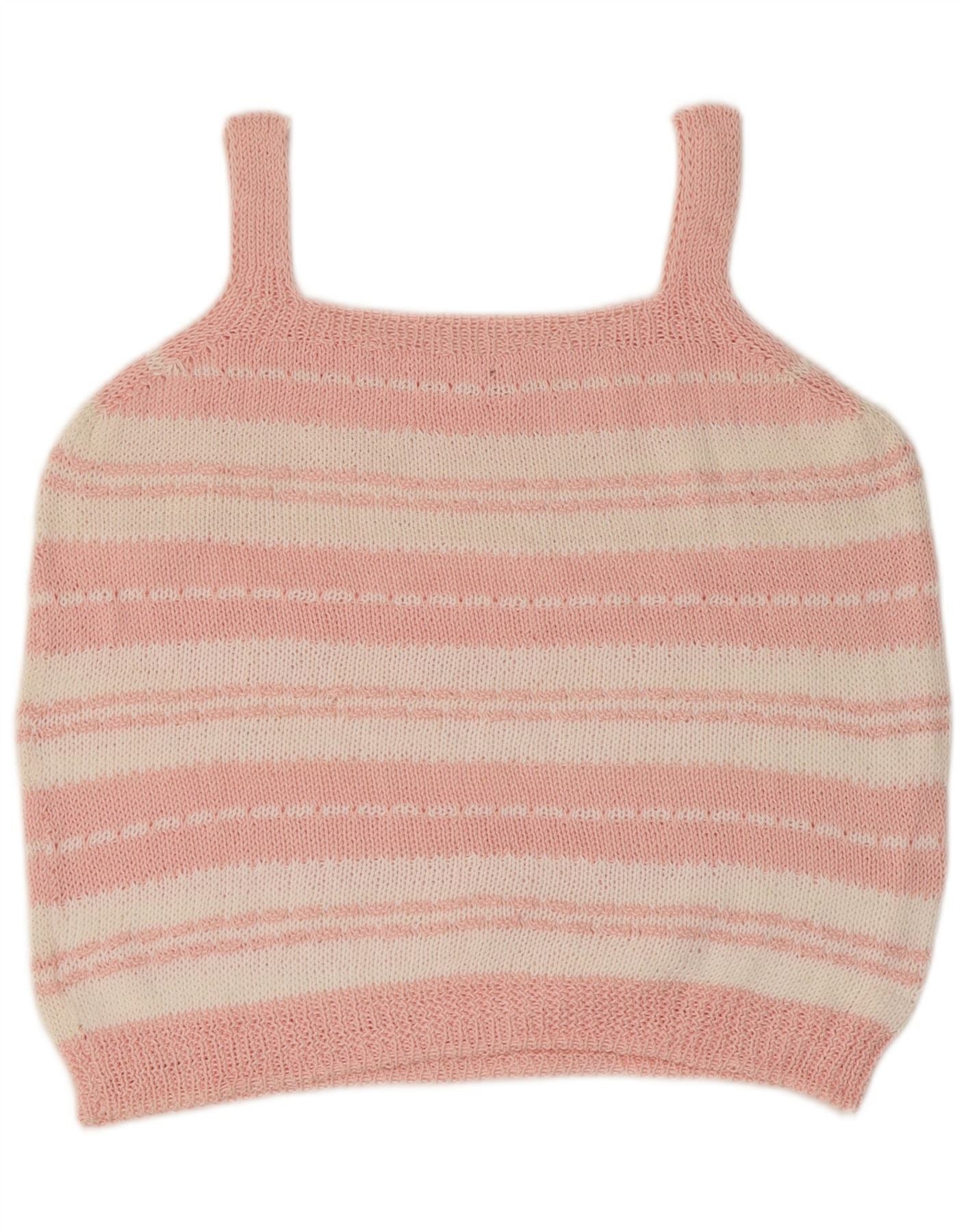 VINTAGE Dame Strik Cami Top UK 14 Large Pink Stribet