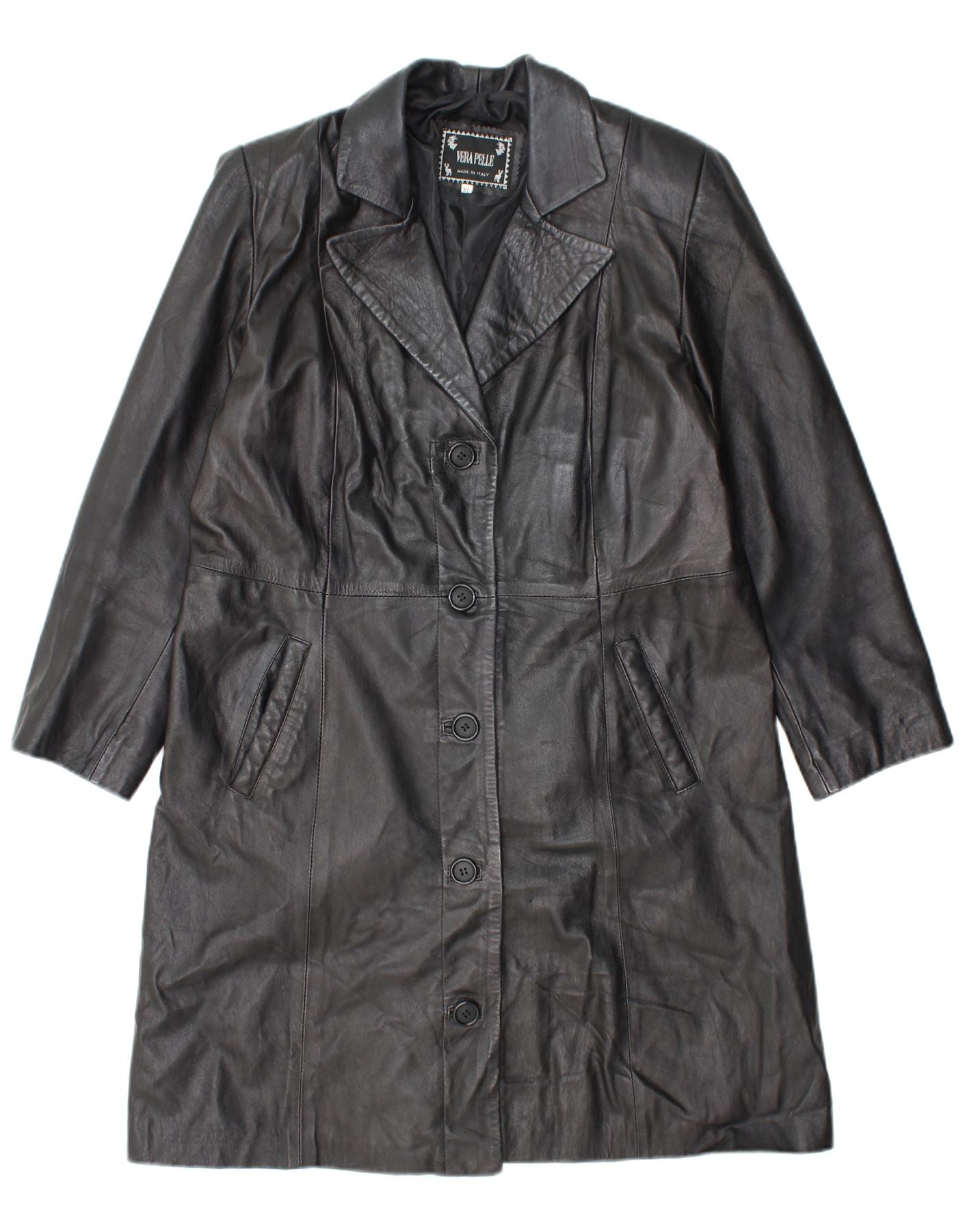 VINTAGE læderfrakke til kvinder UK 18 XL sort læder