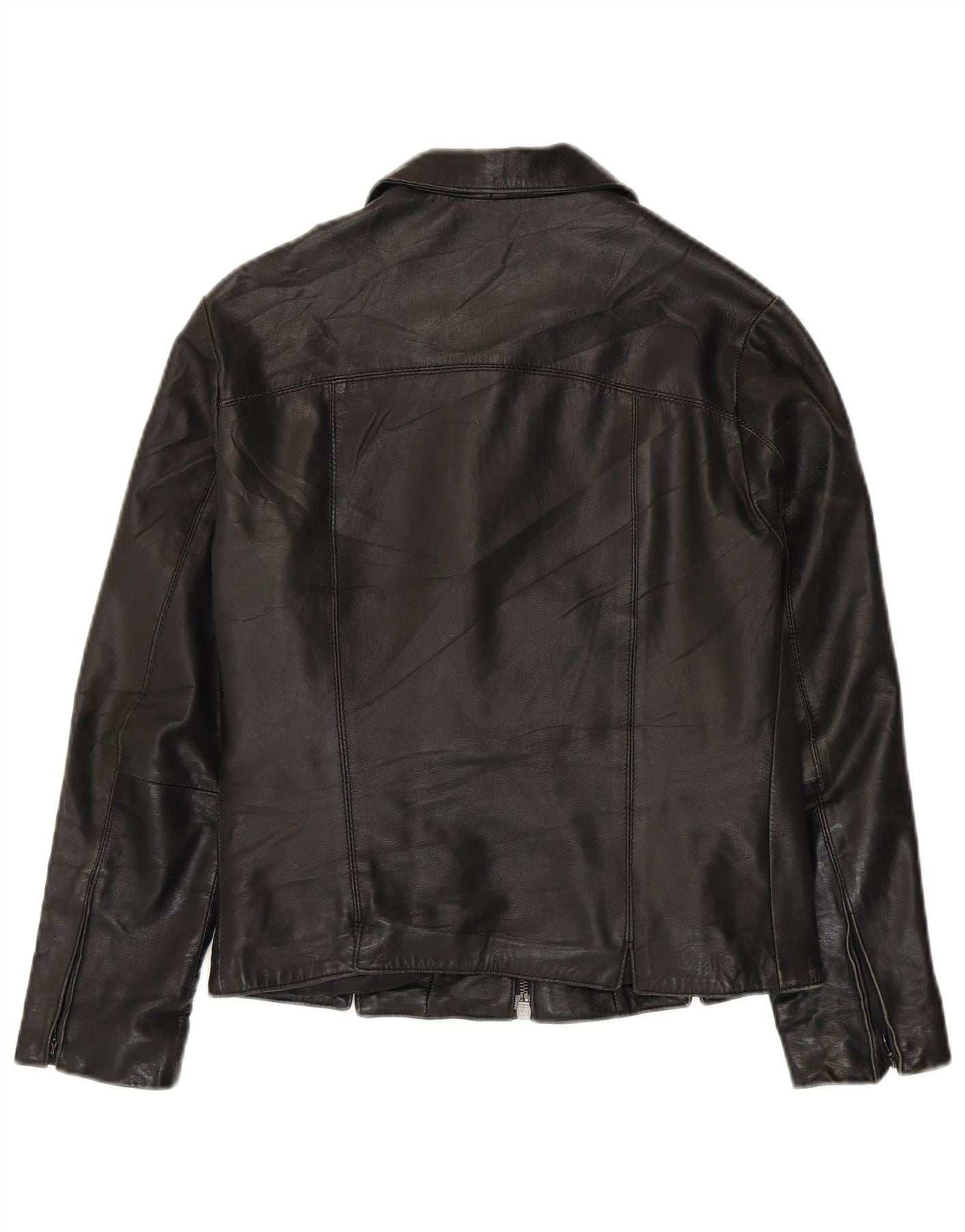 VINTAGE Dame Læderjakke IT 42 Medium Sort Læder