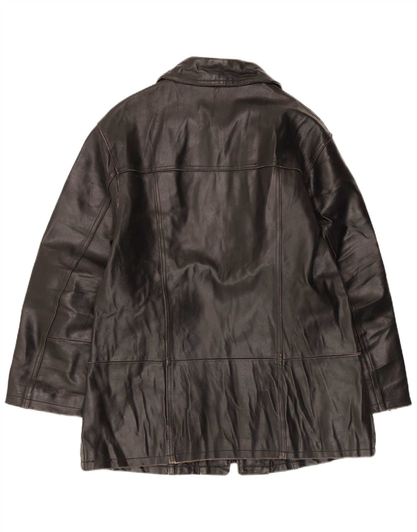 VINTAGE Dame Læderjakke IT 42 Medium Sort Læder