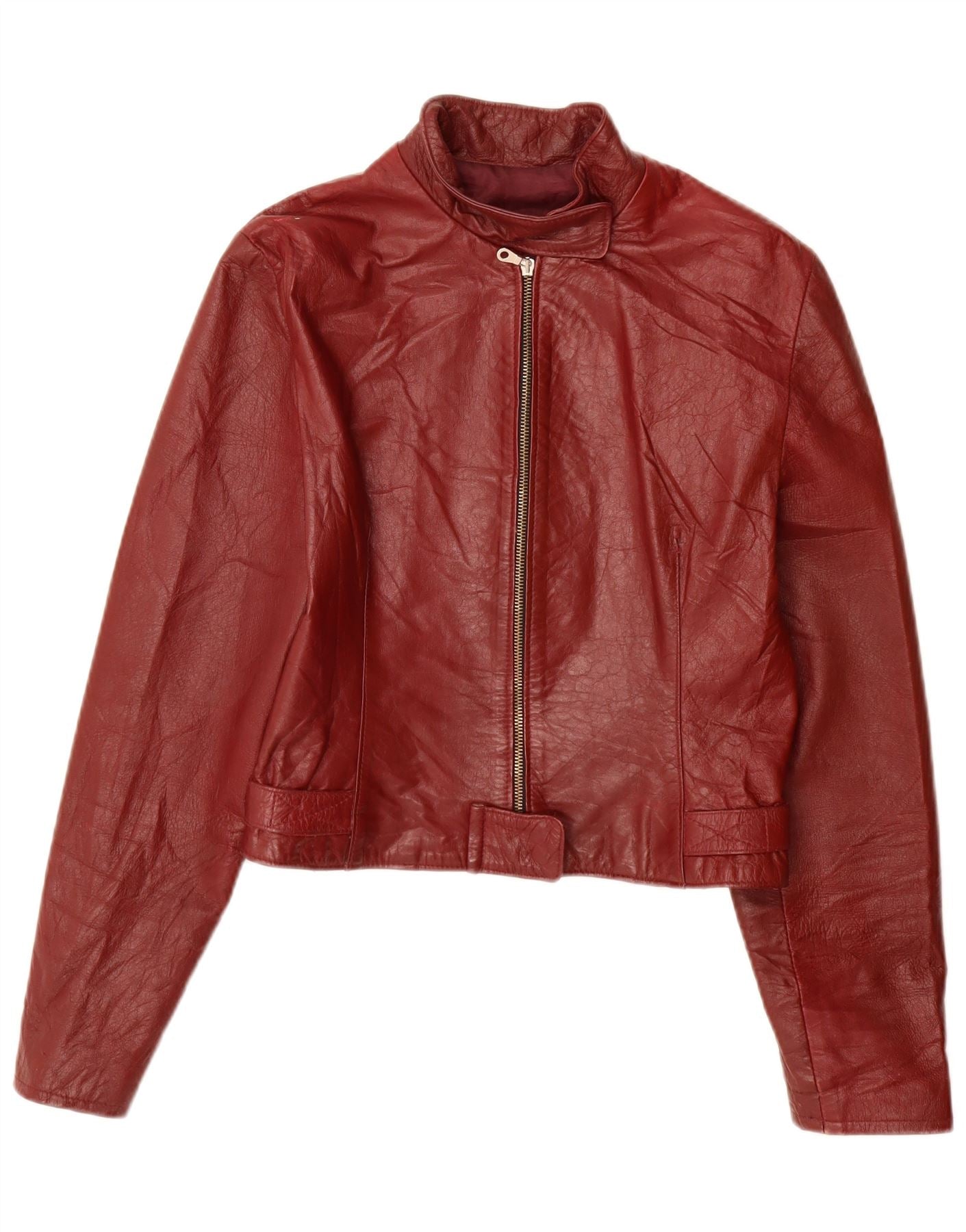 VINTAGE Dame Læderjakke UK 10 Small Bourgogne Læder