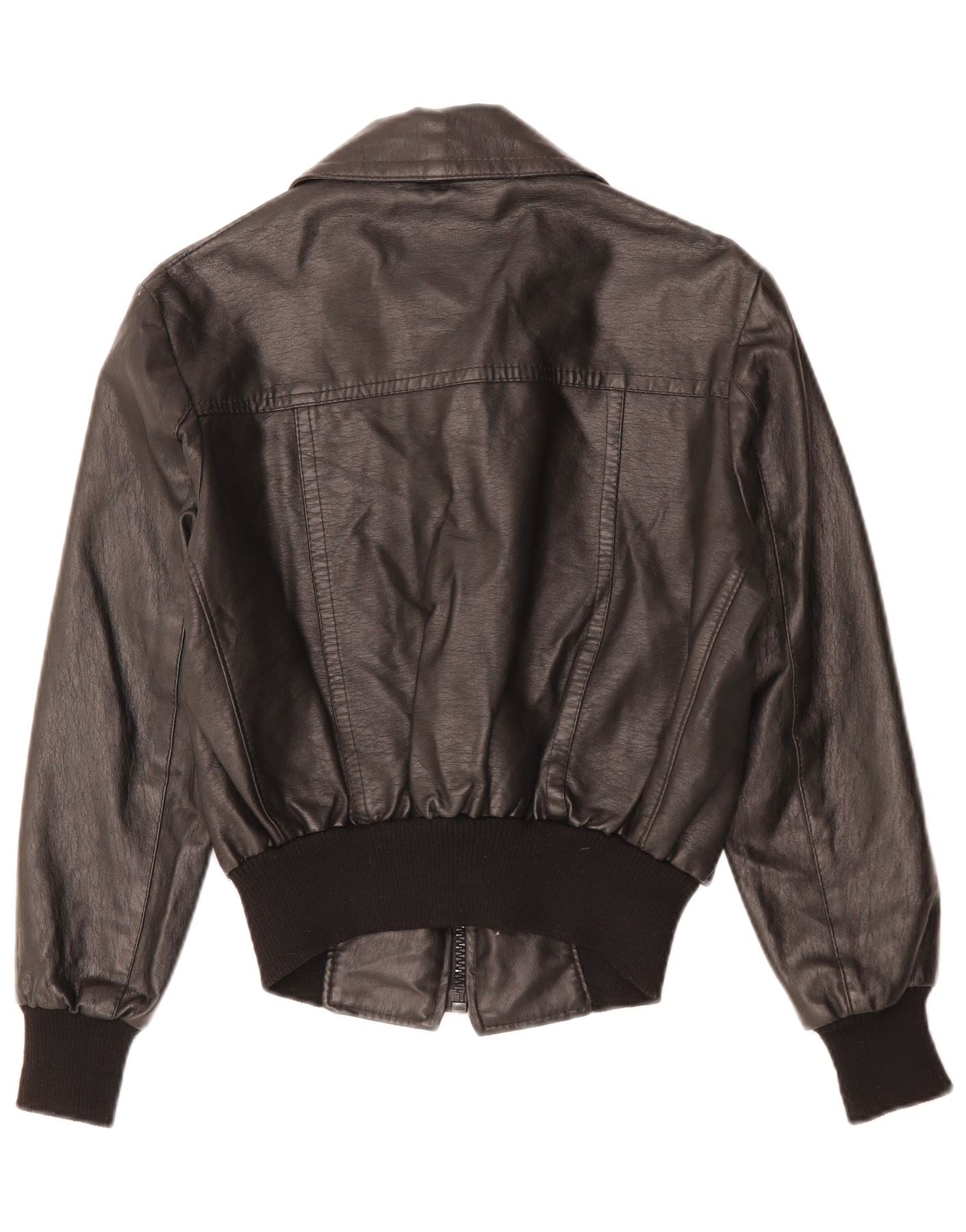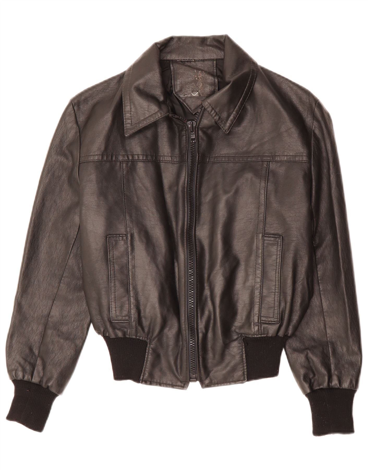 VINTAGE Dame Læderjakke UK 12 Medium Sort