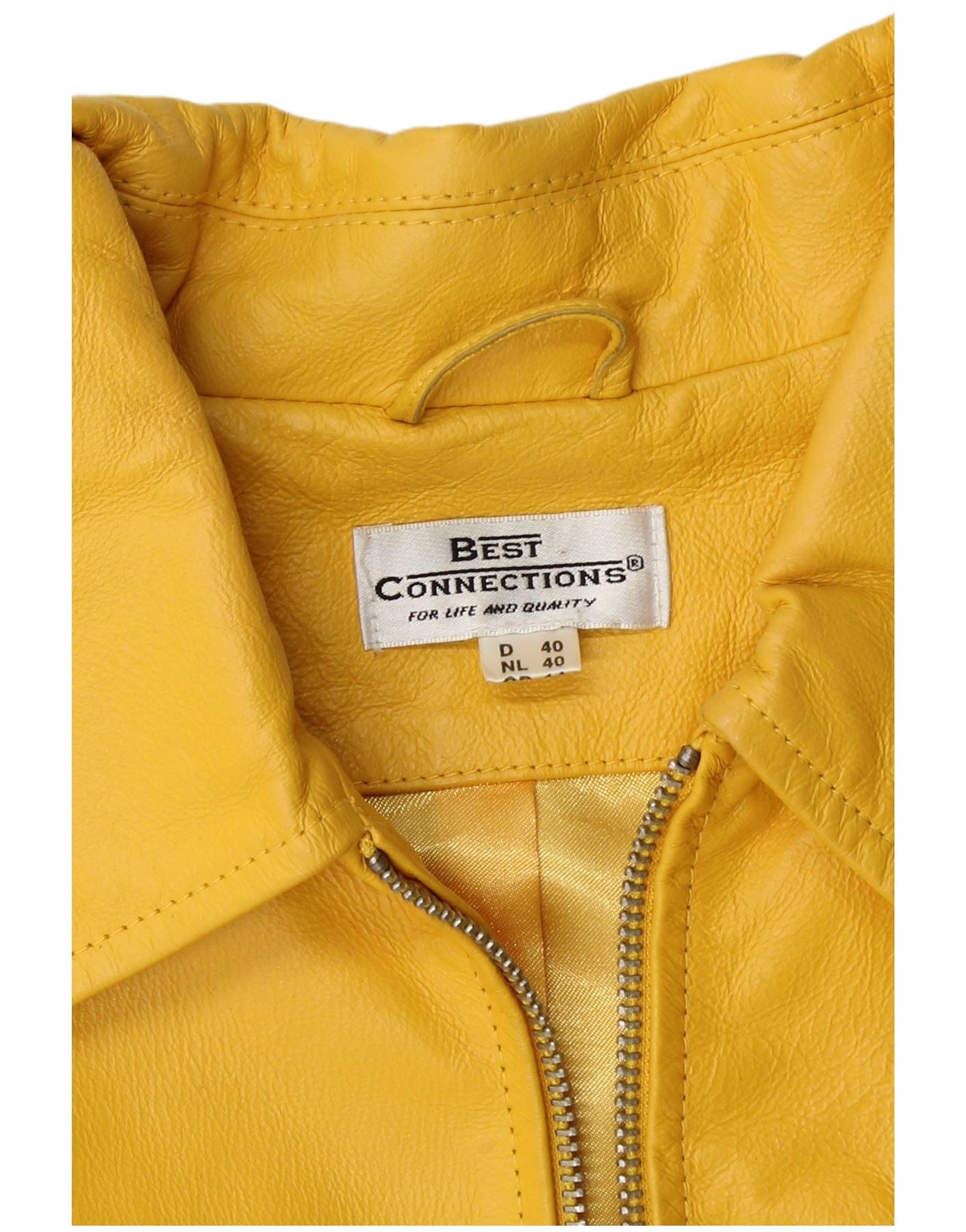 VINTAGE Dame Læderjakke UK 14 Medium Yellow Læder