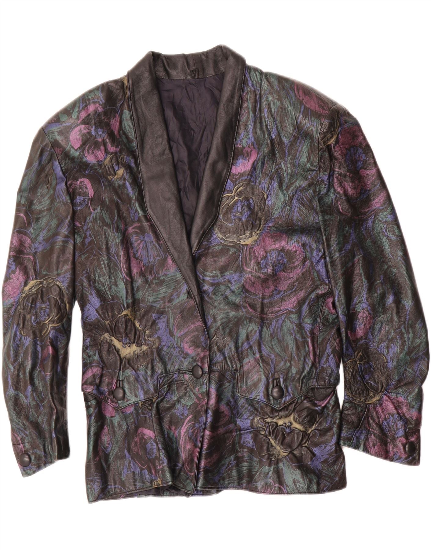 VINTAGE læderjakke til kvinder UK 16 Stor sort blomstret læder