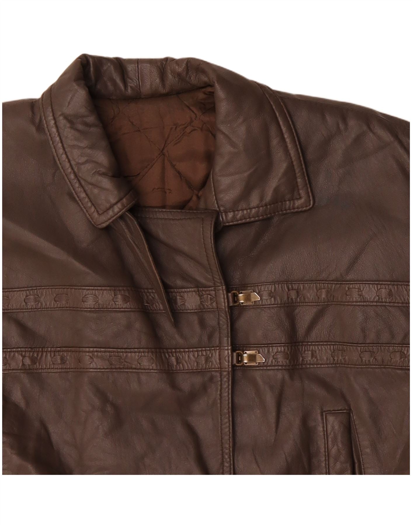 VINTAGE Dame Læderjakke UK 18 XL Brun