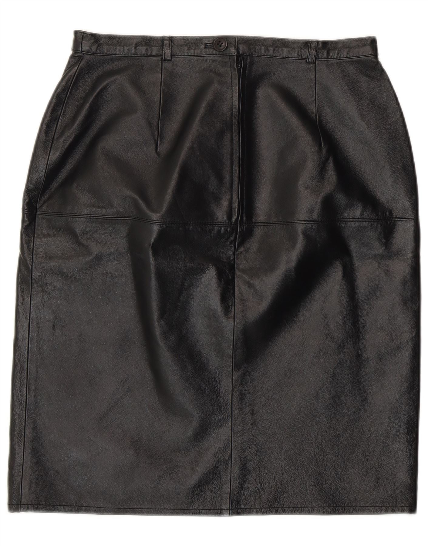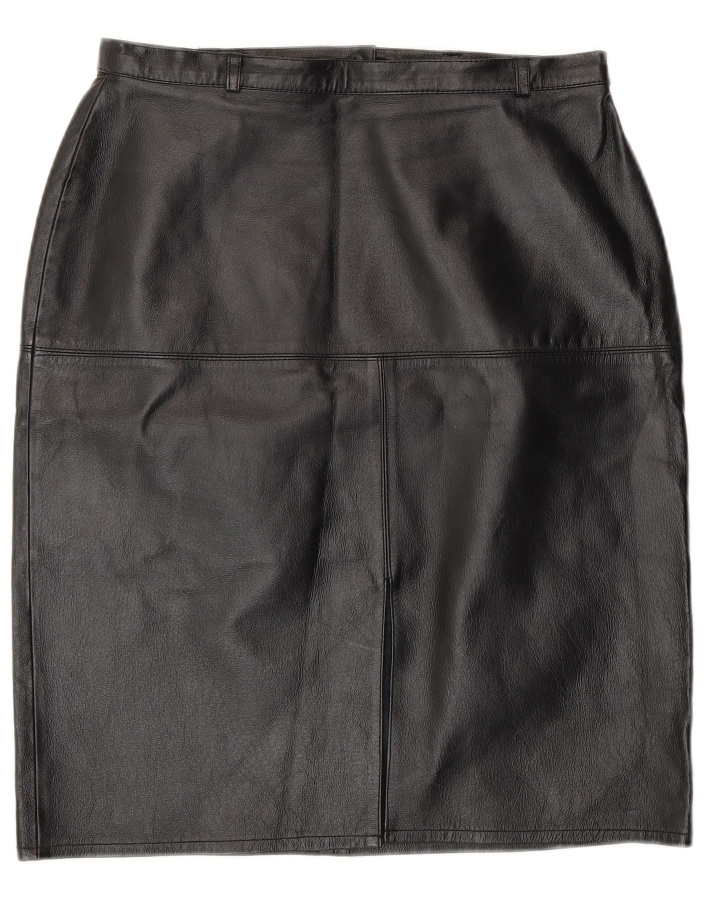 Vintage kvinders læder blyantnederdel UK 12 Medium W28 sort læder