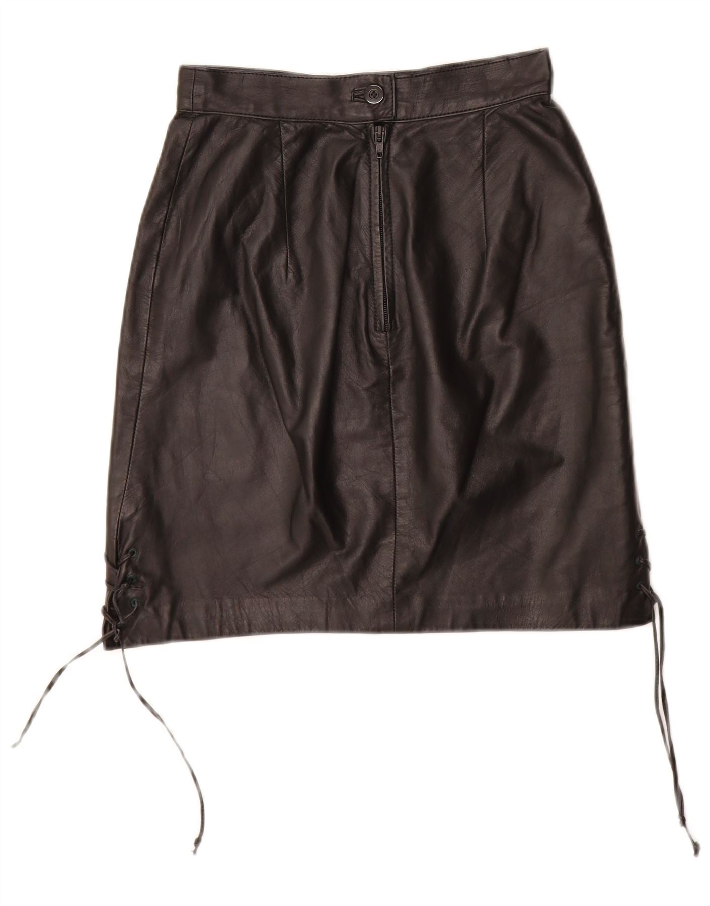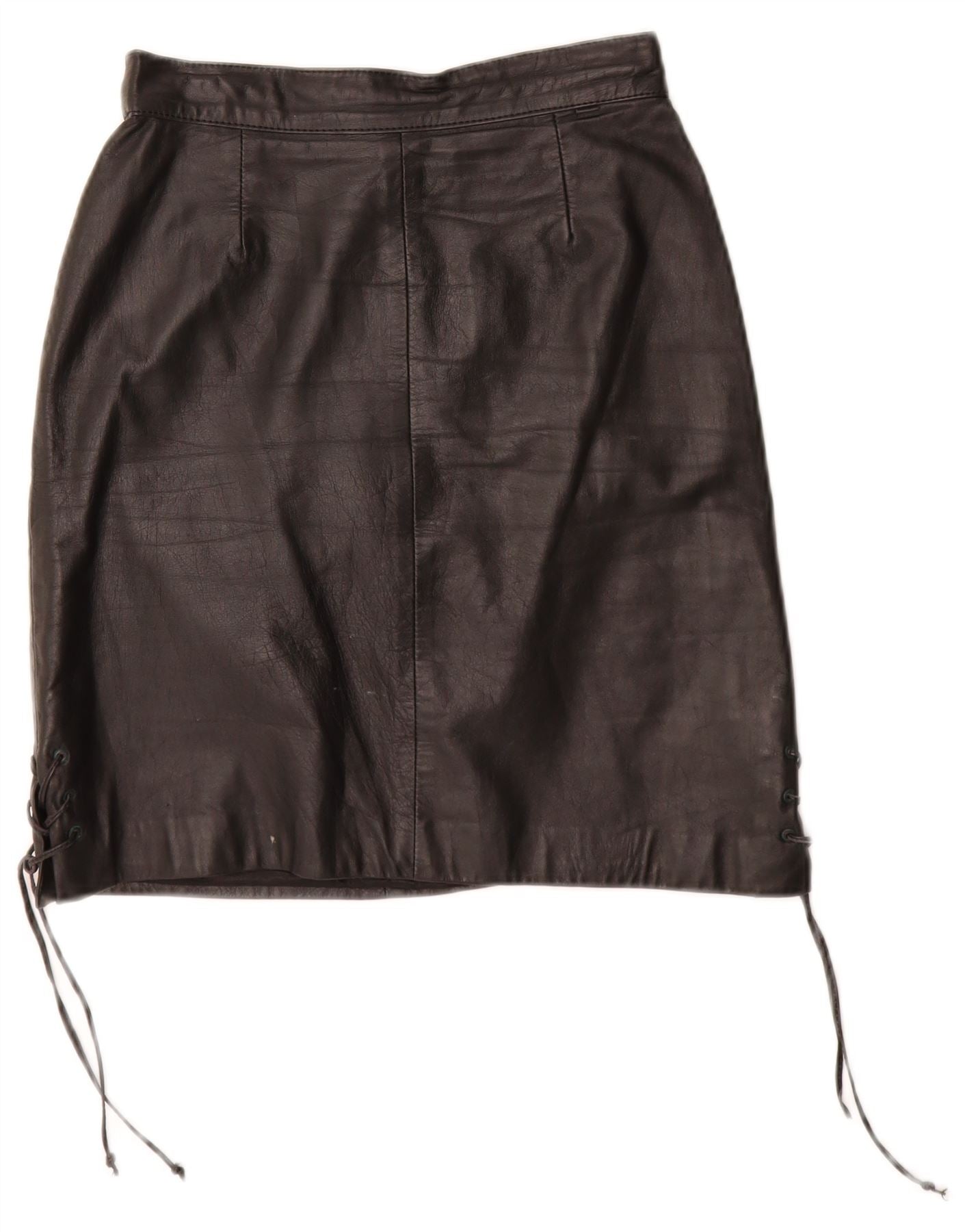 VINTAGE lædernederdel til kvinder EU 34 XS W24 sort læder