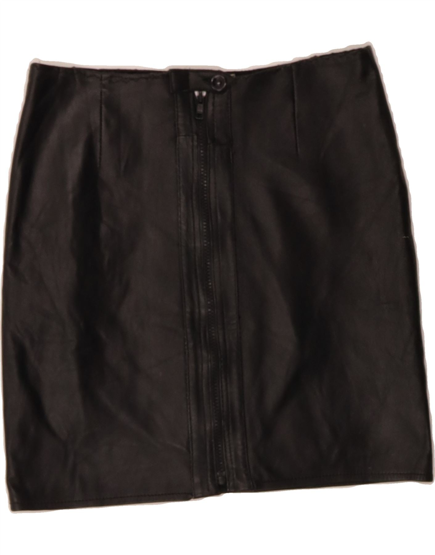 VINTAGE Womens Leather Skirt EU 40 Medium W30 Black