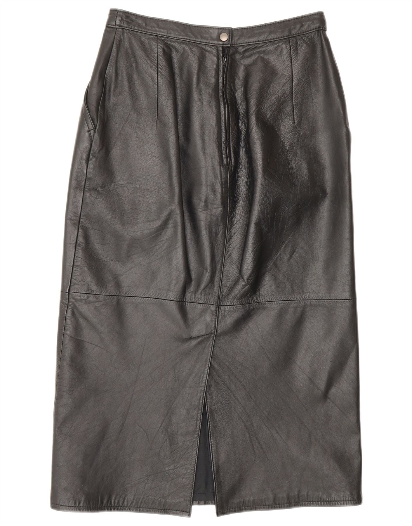 VINTAGE lædernederdel til kvinder UK 10 Small W26 sort læder