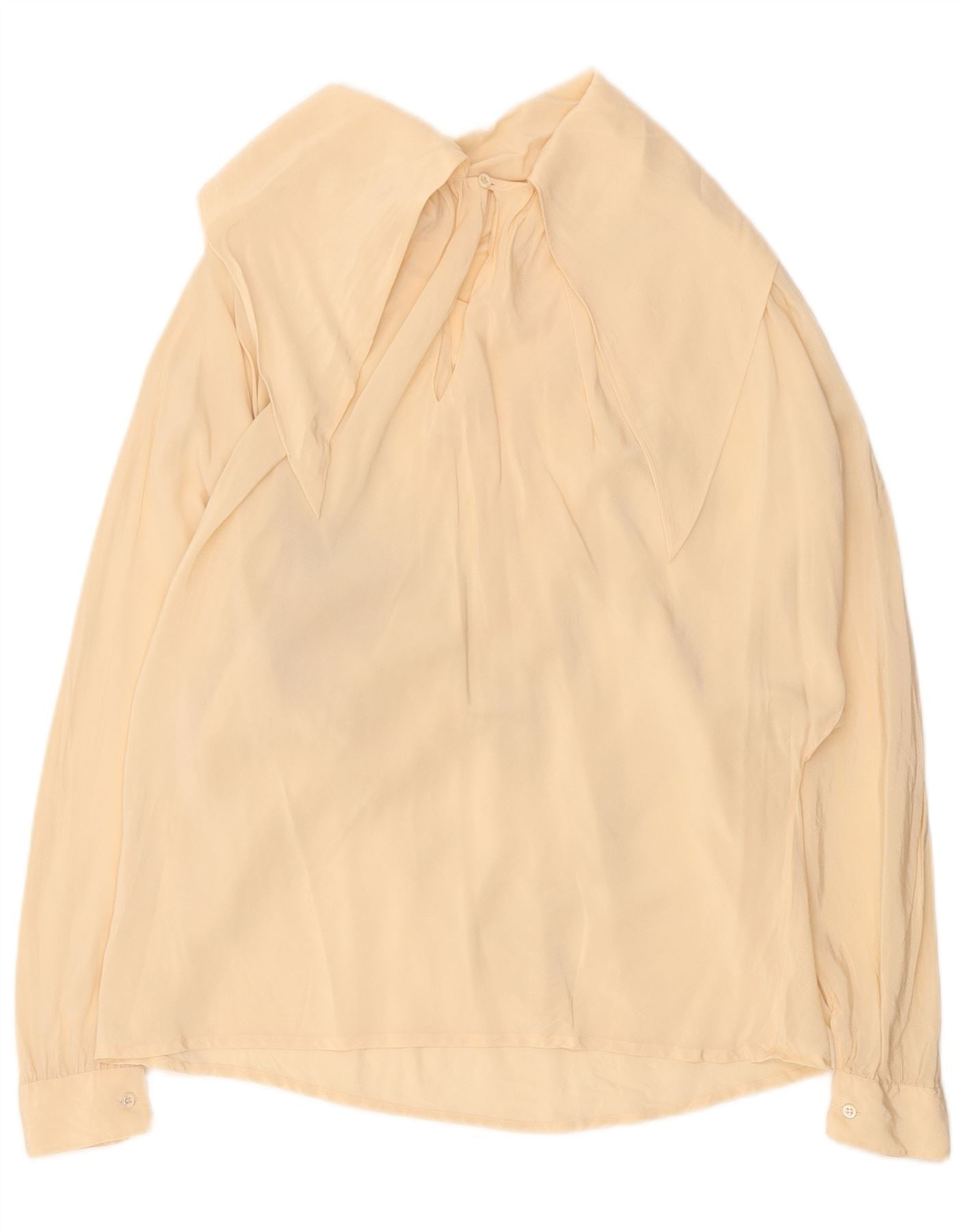 Vintage Dame Langærmet Bluse Top UK 14 Stor Beige Geometrisk Silke