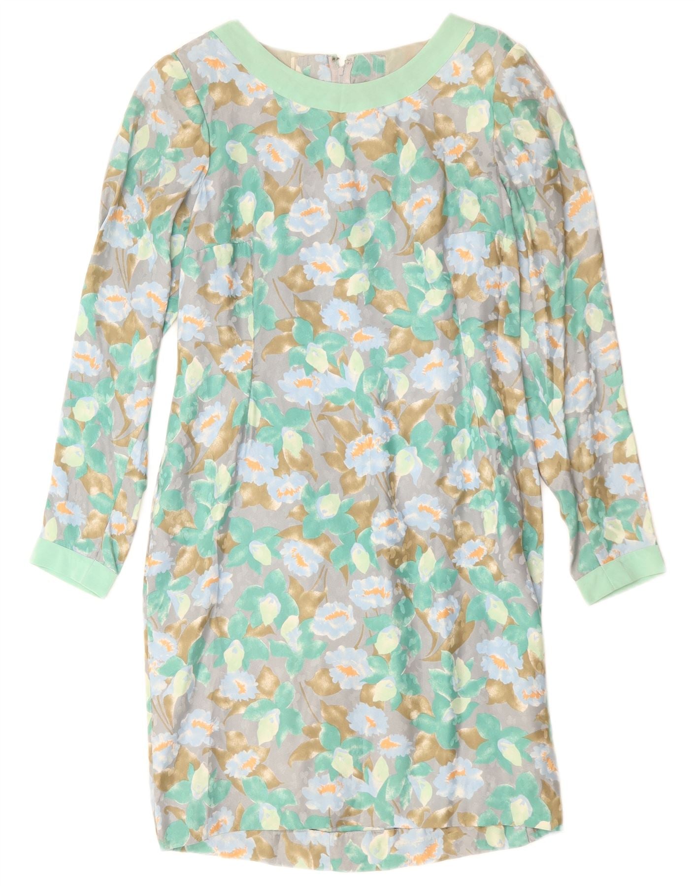 Vintage Dame Langærmet Skede Kjole UK 12 Medium Green Floral