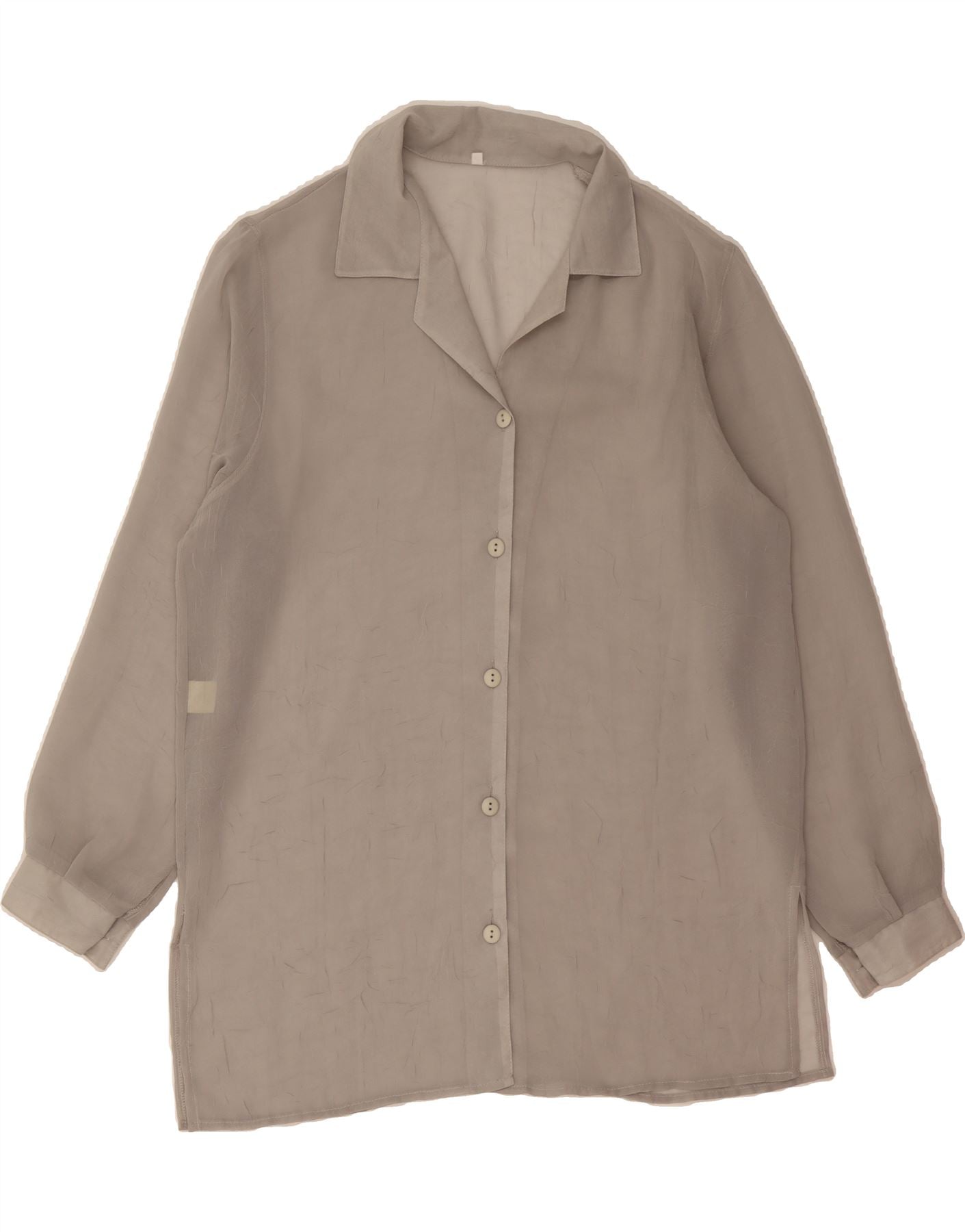 VINTAGE Womens Longline Oversized Shirt Blouse UK 14 Medium Grey