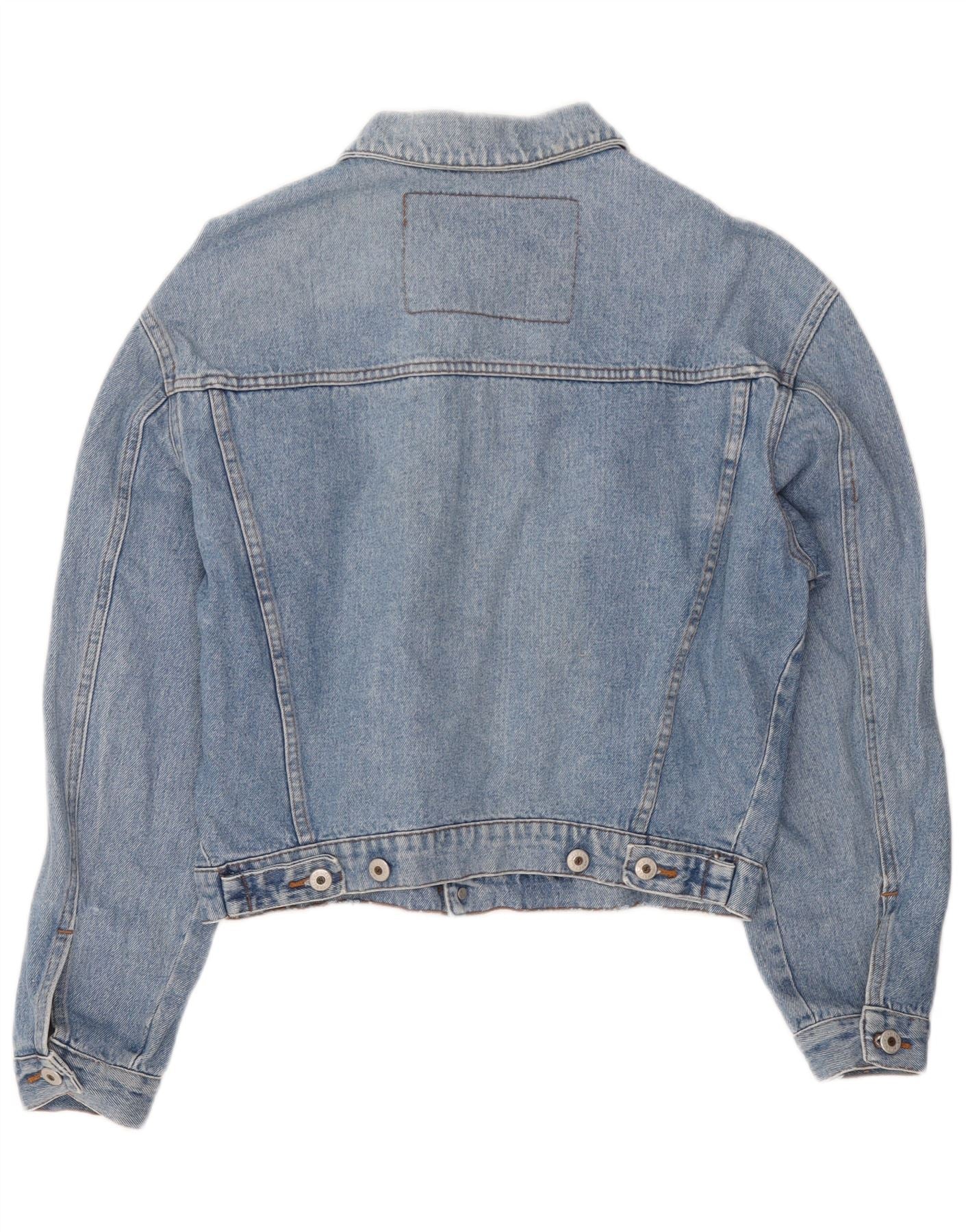 Vintage Dame Loose Fit Crop Denim Jacket UK 16 Large Blue