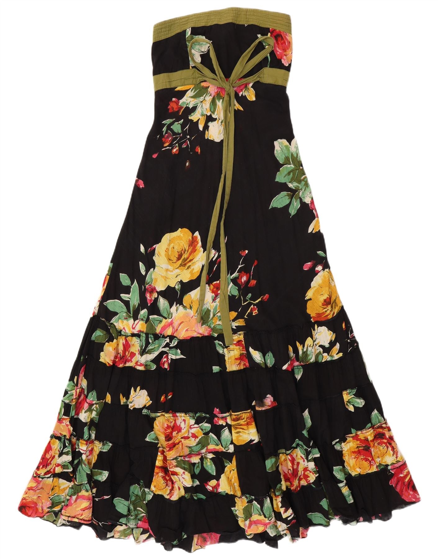 VINTAGE Dame Maxi Stropløs Kjole UK 14 Medium Black Floral Bomuld