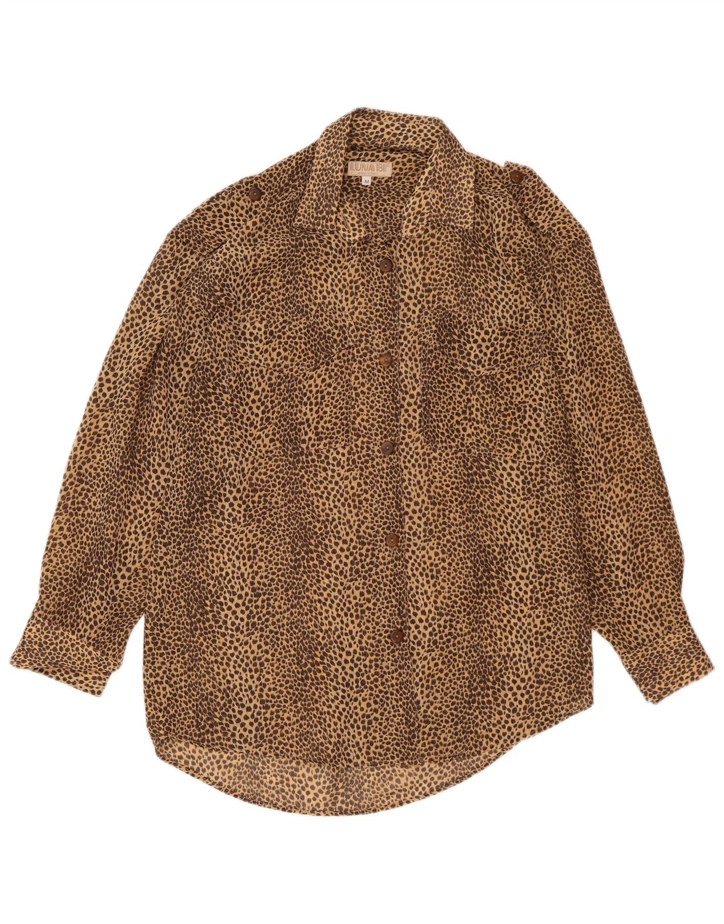 VINTAGE Militærskjorte til kvinder UK 14 Medium Brown Animal Print