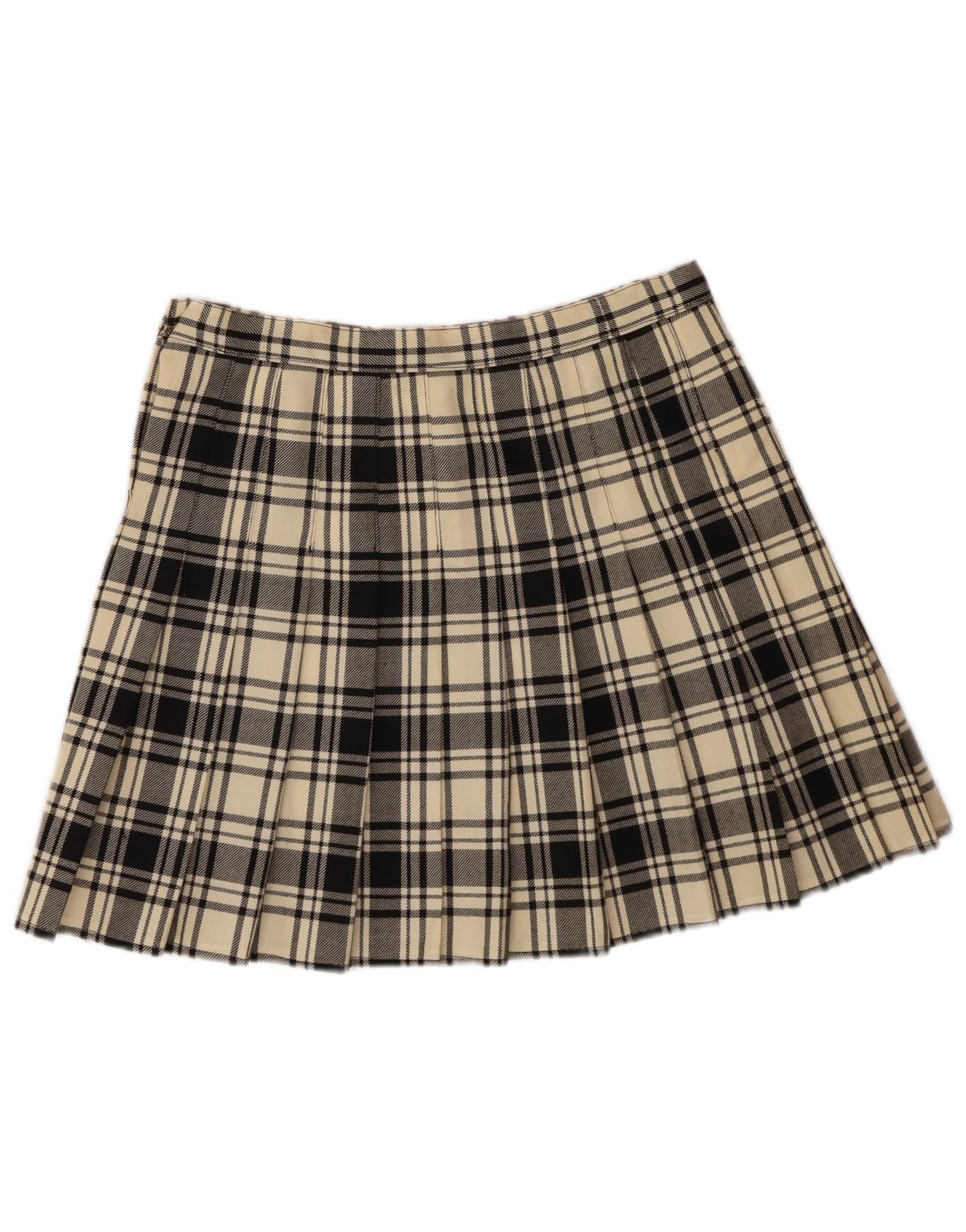 VINTAGE Mini-nederdel til kvinder W30 Medium Off White Plaid Virgin Wool