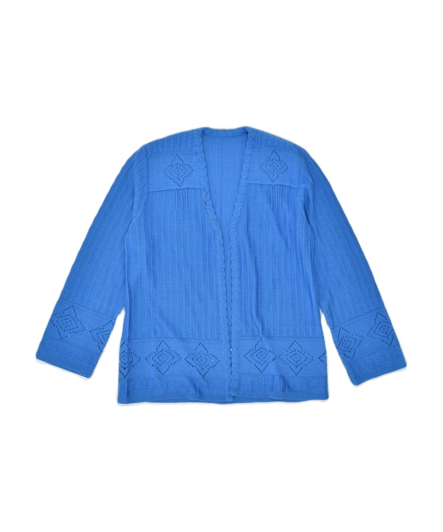 VINTAGE Womens Open Cardigan Sweater UK 12 Medium Blue Cotton Classic