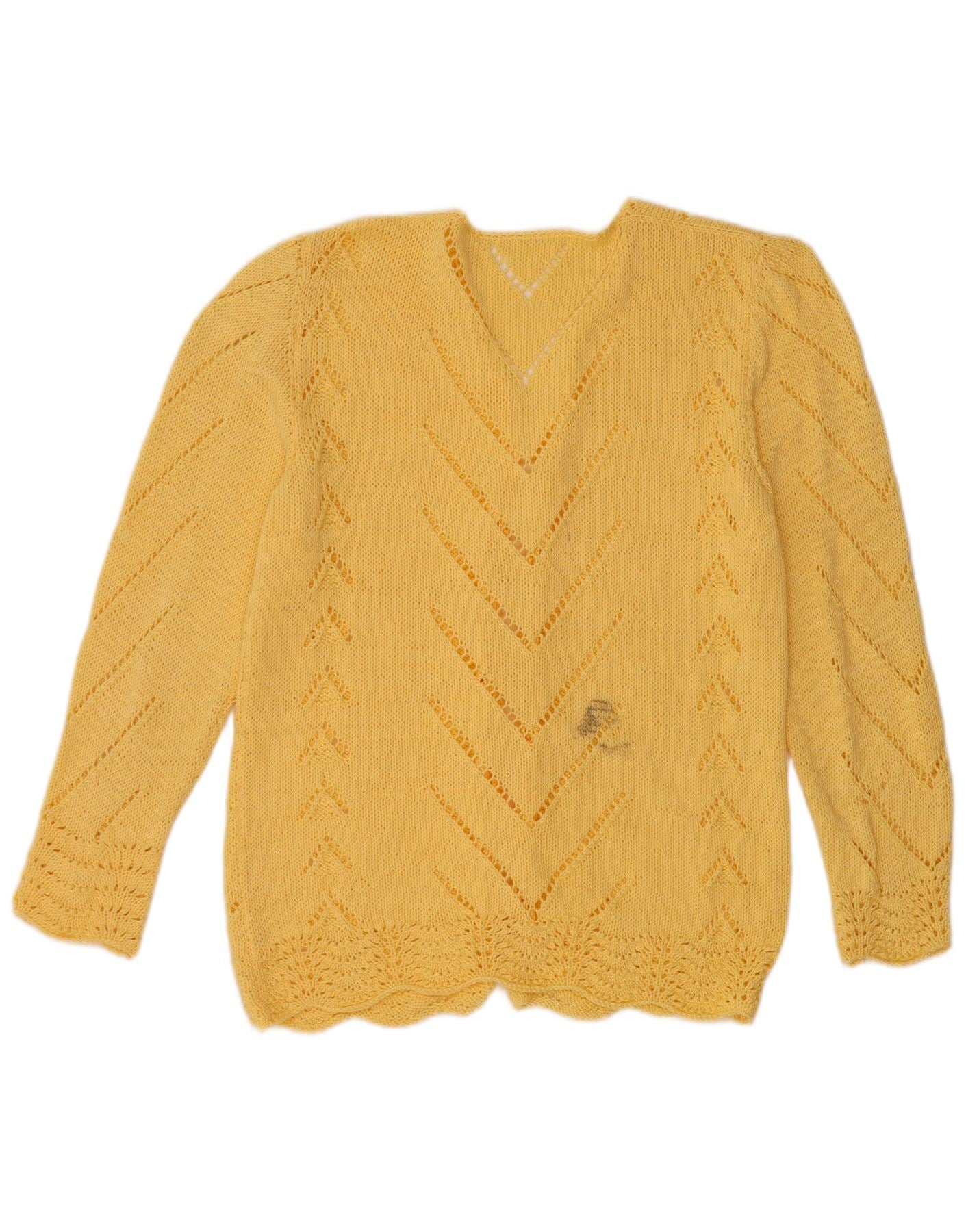 VINTAGE Womens Open Cardigan Sweater UK 12 Medium Yellow