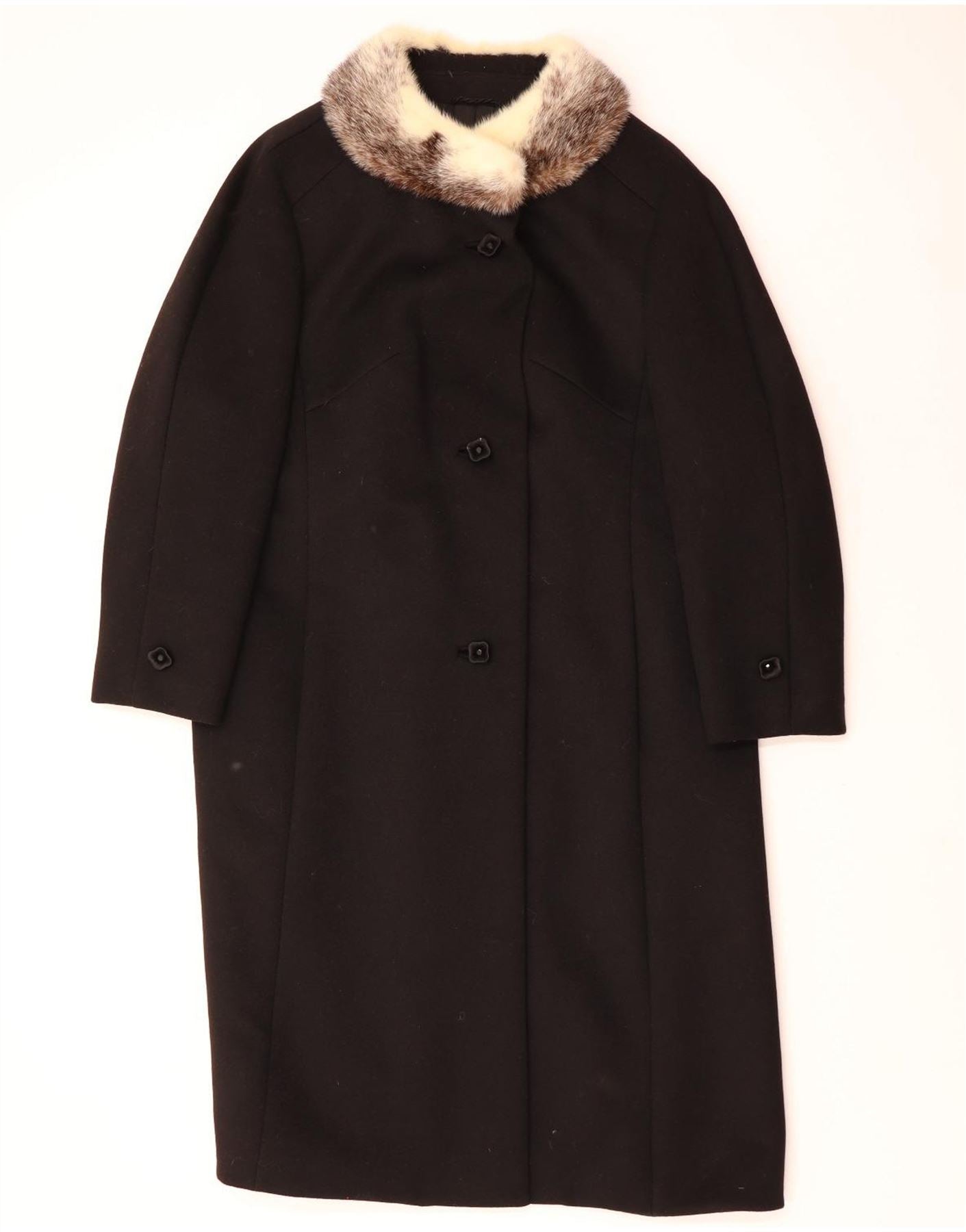 VINTAGE Dame Overfrakke UK 14 Stor Sort Uld