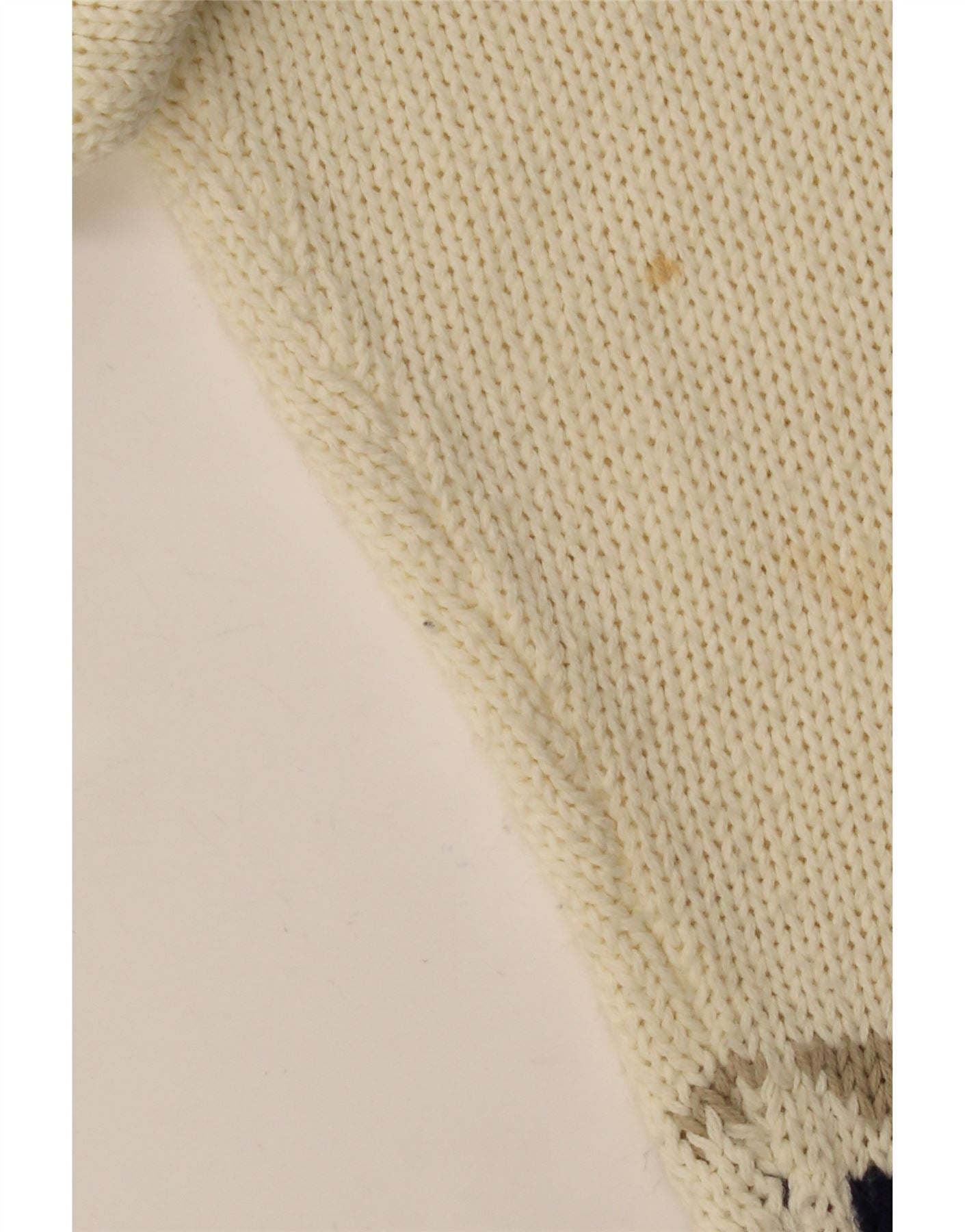 VINTAGE Dame Oversized Cardigan Sweater UK 10 Small Off White Geometrisk