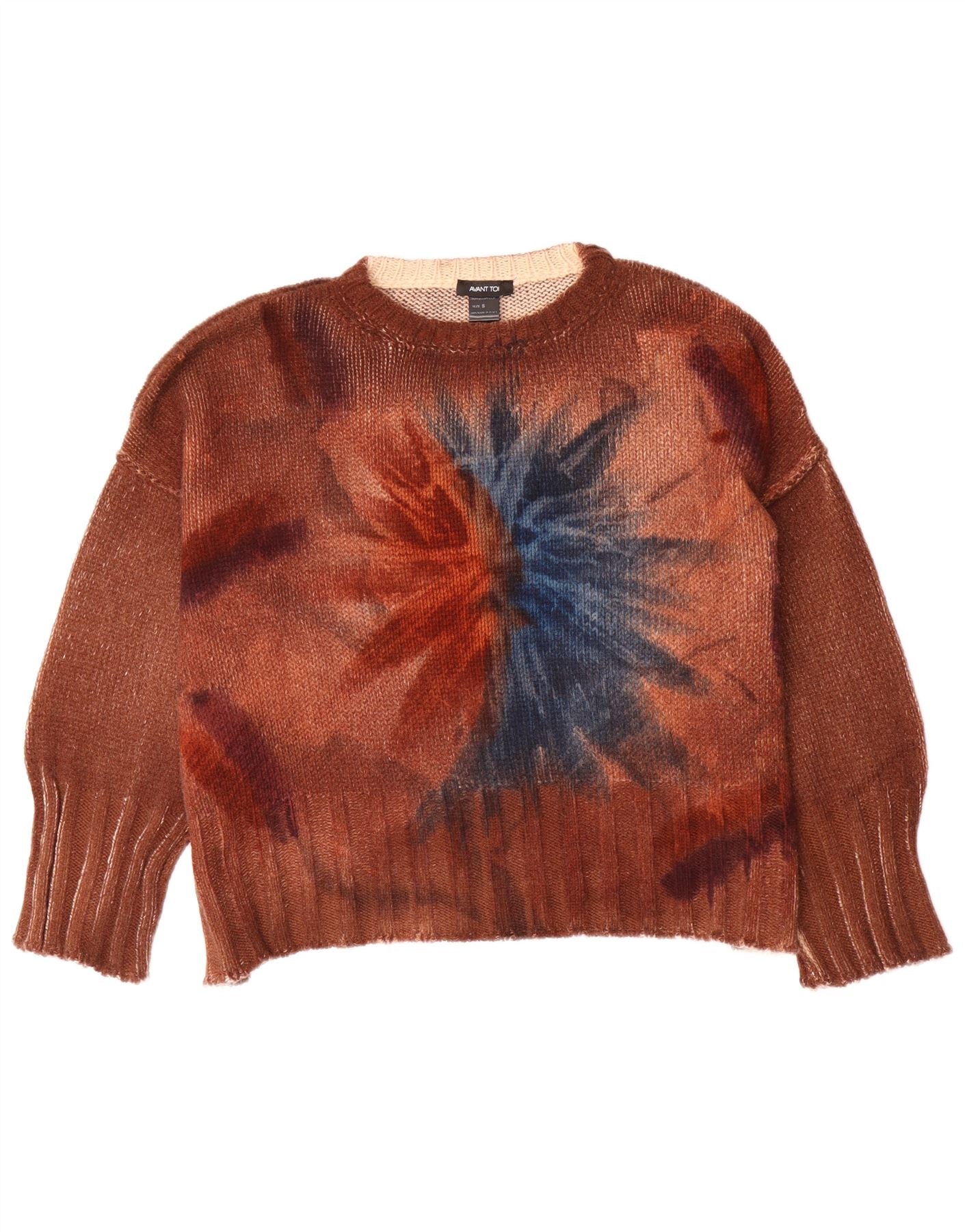 Vintage Dame Oversized Crew Neck Jumper Sweater UK 10 Small Brown Tie Dye
