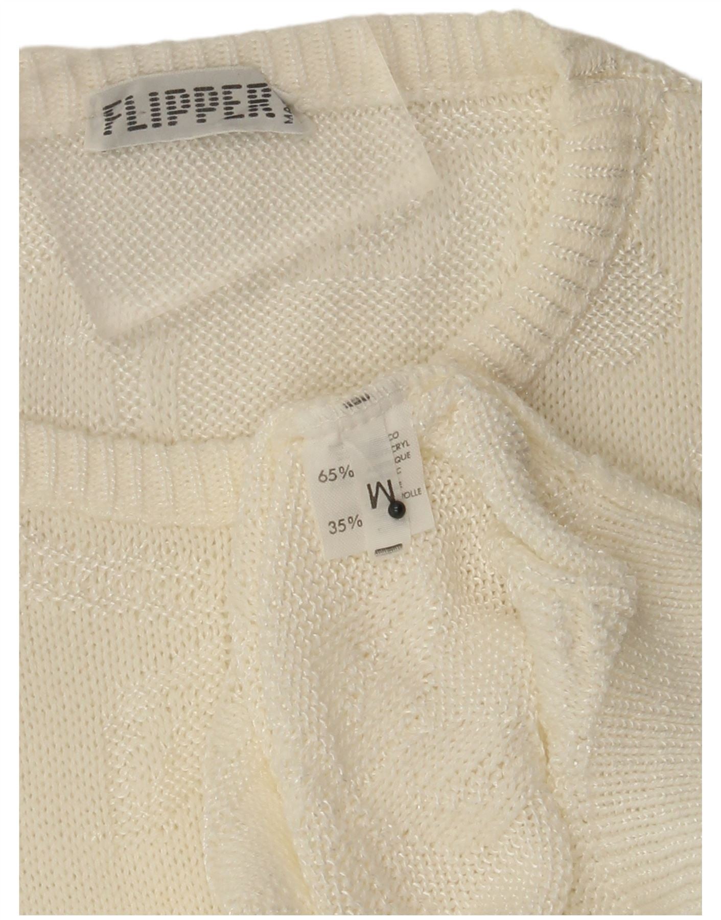 VINTAGE Dame sweater med rund hals i overstørrelse UK 14 Medium Off White